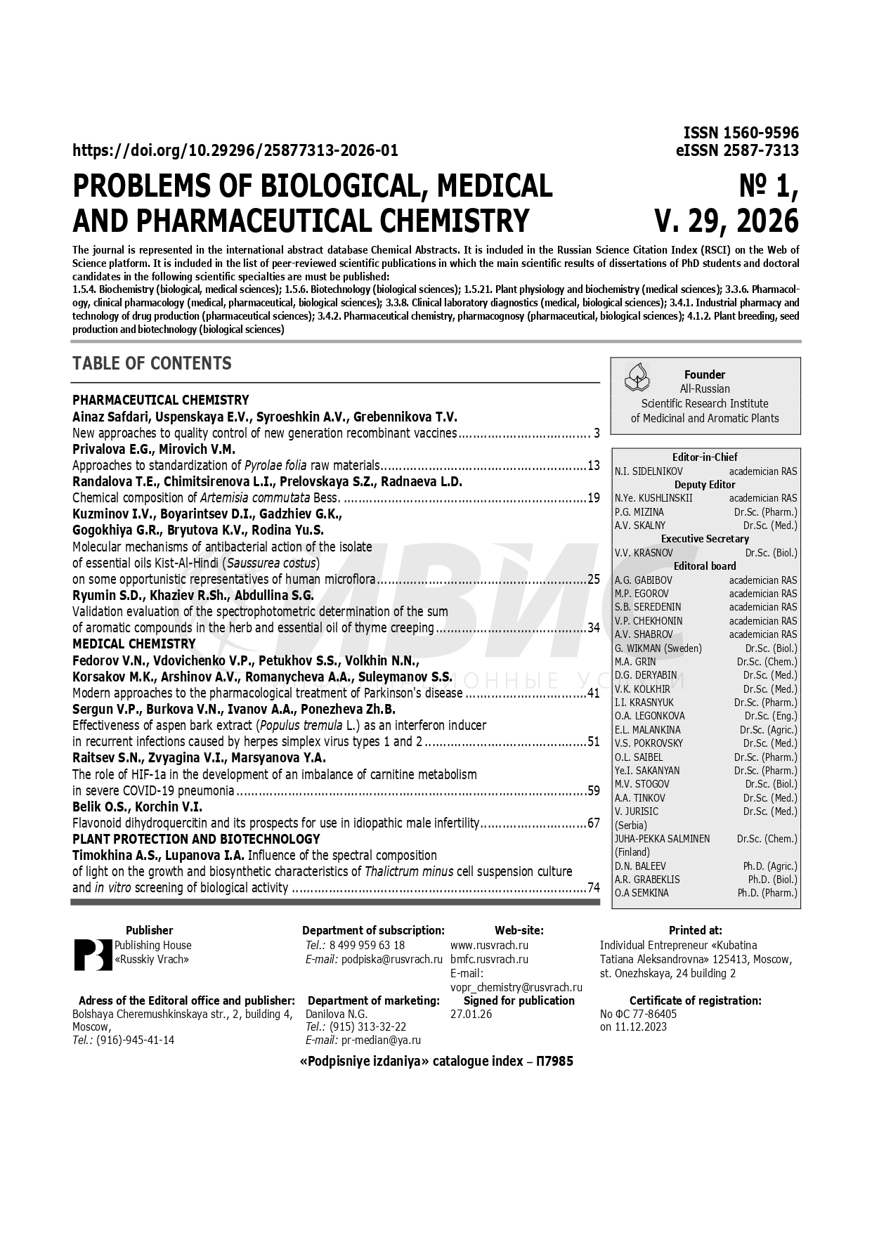 Вопросы биологической, медицинской и фармацевтической химии 2026 № 1 |