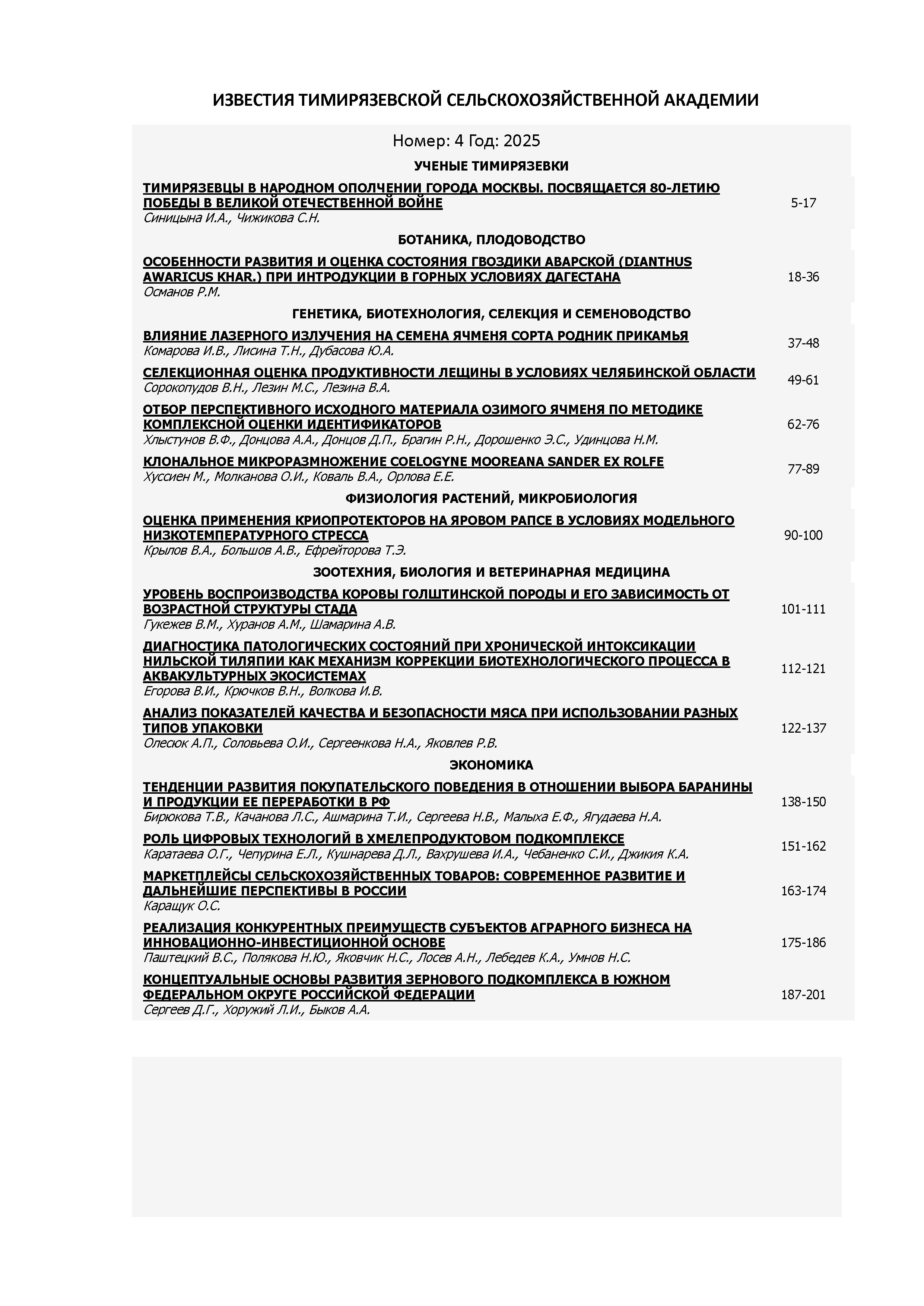 Известия Тимирязевской сельскохозяйственной академии 2025 N 4 |