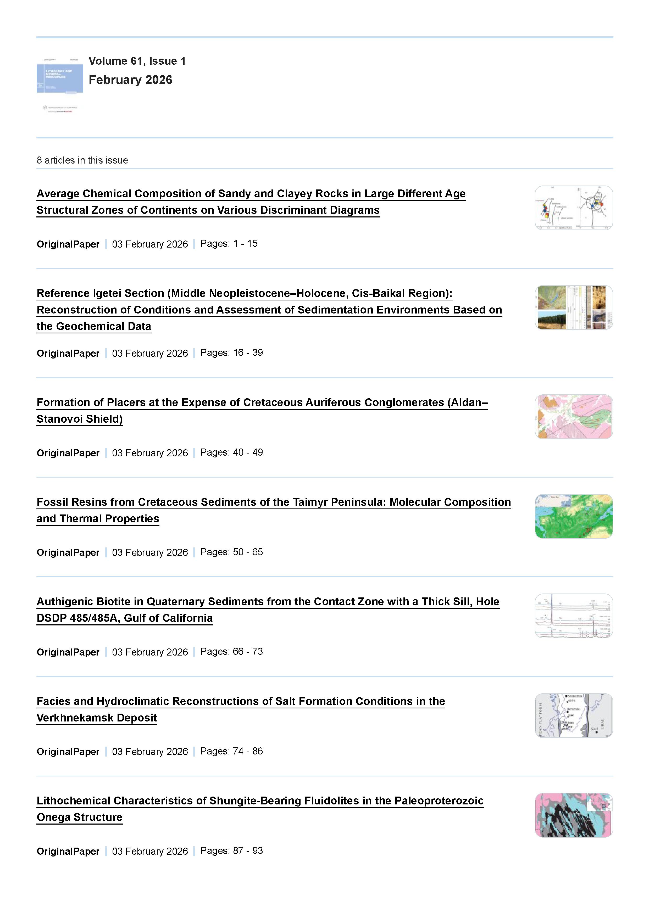 Lithology and Mineral Resources 2026 Vol. 61 Is. 1 |