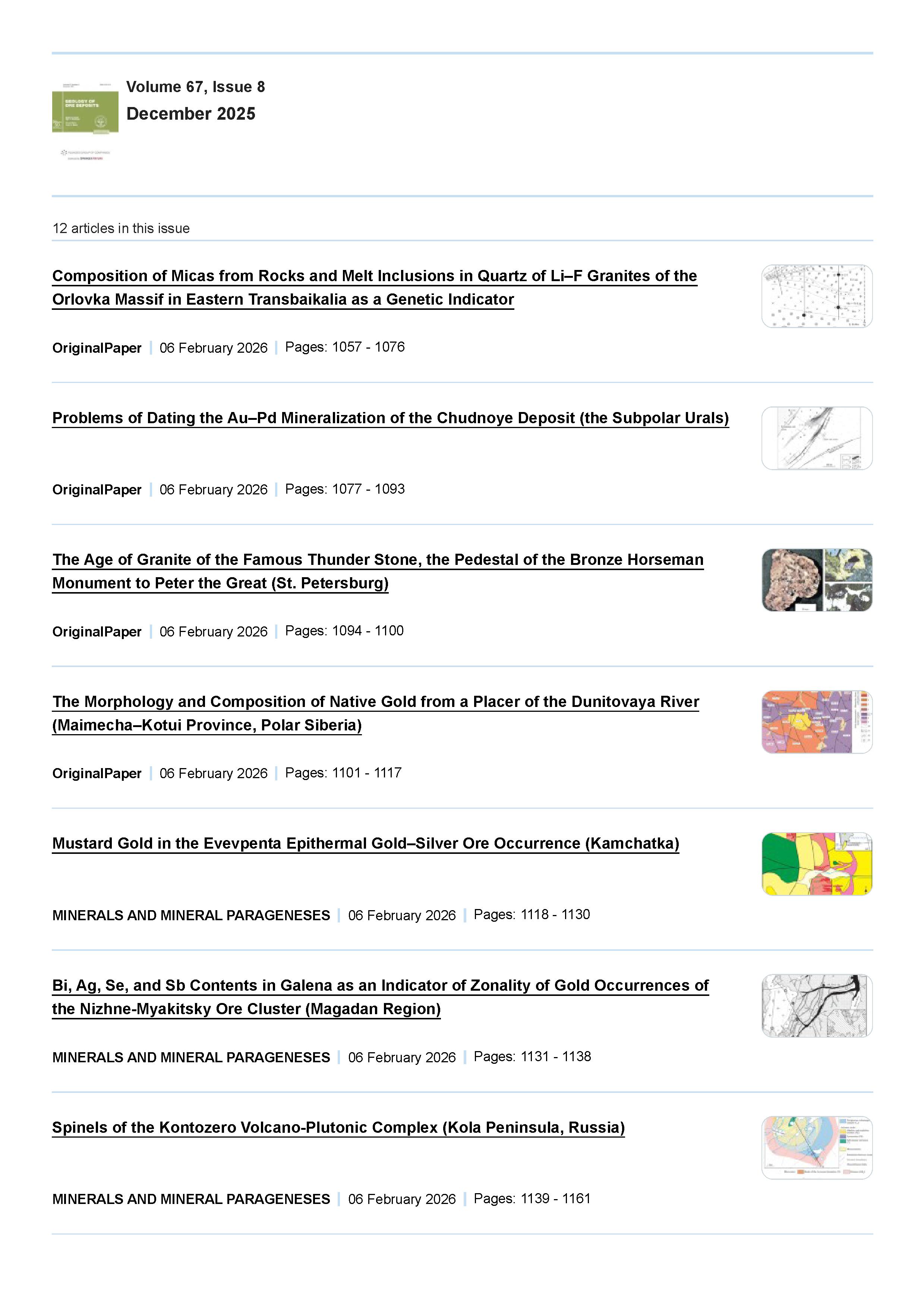 Geology of Ore Deposits 2025 Vol. 67 Is. 8 |