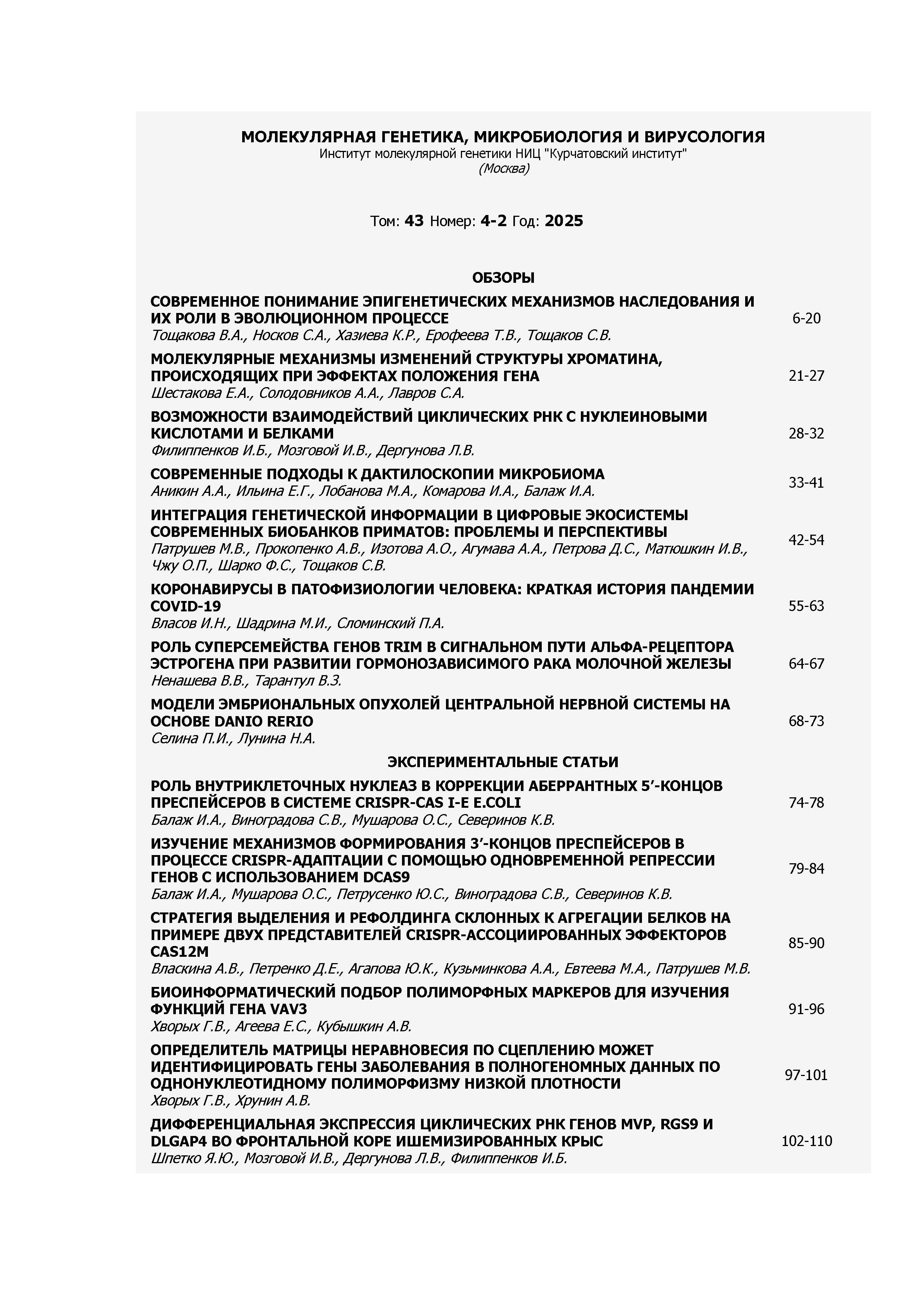 Молекулярная генетика, микробиология и вирусология 2025 N 4-2 |