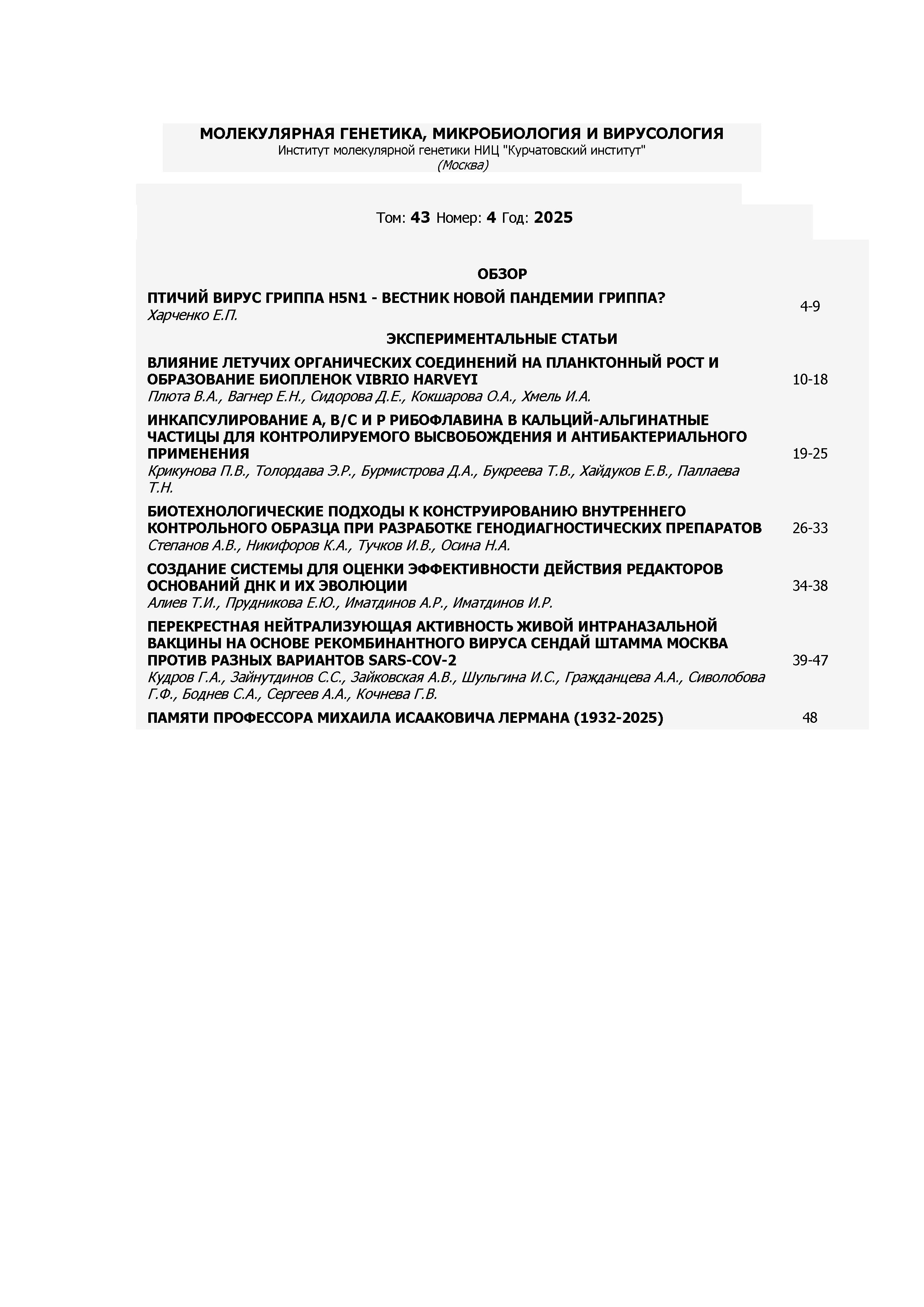 Молекулярная генетика, микробиология и вирусология 2025 N 4 |