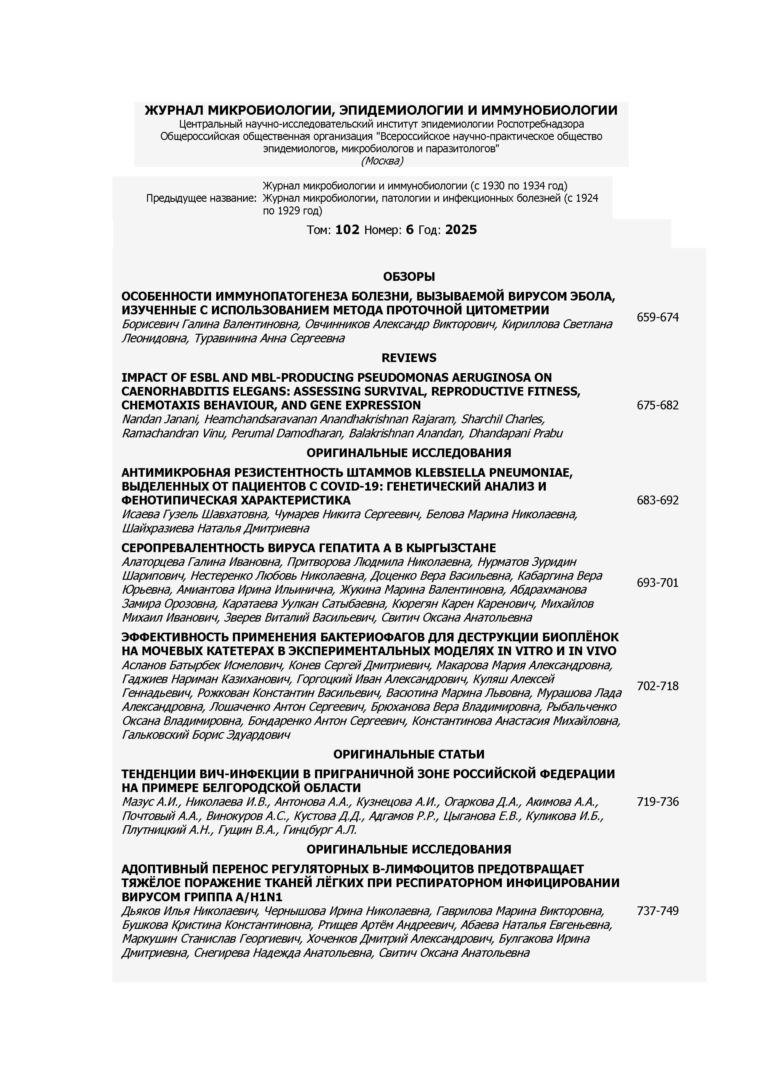 Журнал микробиологии, эпидемиологии и иммунологии 2025 N 6 |