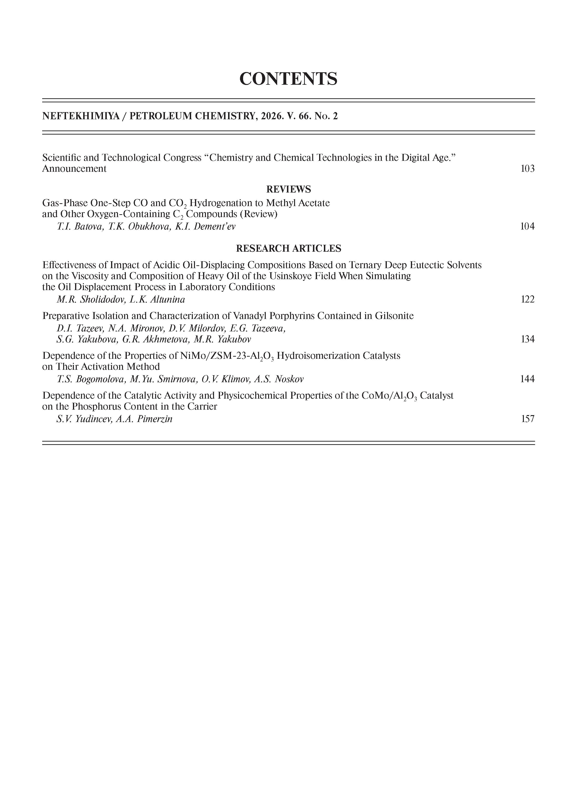 Нефтехимия 2026 Т. 66 N 2 | Нефтехимия 2026 Т. 66 N 2 | 2026 | 2 |