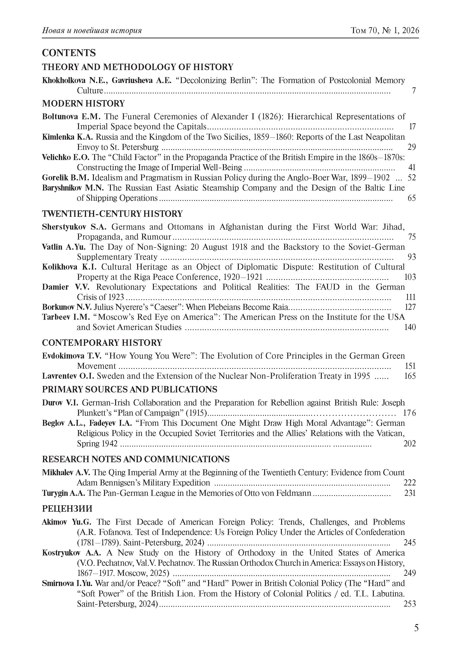 Новая и новейшая история 2026 № 1 | Новая и новейшая история 2026 № 1 | 2026 | 1 |