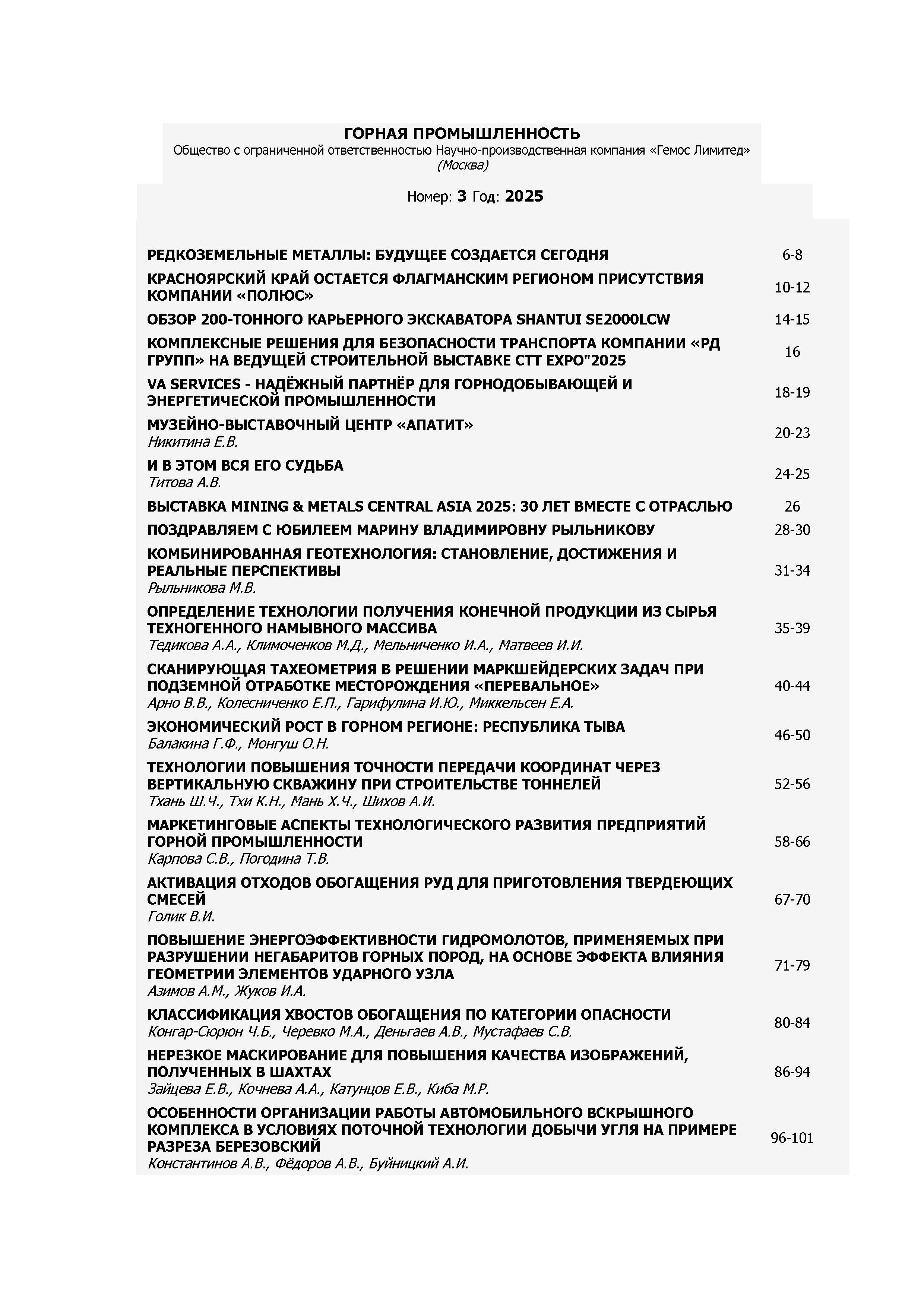02.10.2025-14:48 Горная промышленность 2025 N 3 Горная промышленность 2025 N 3 2025 4 ,