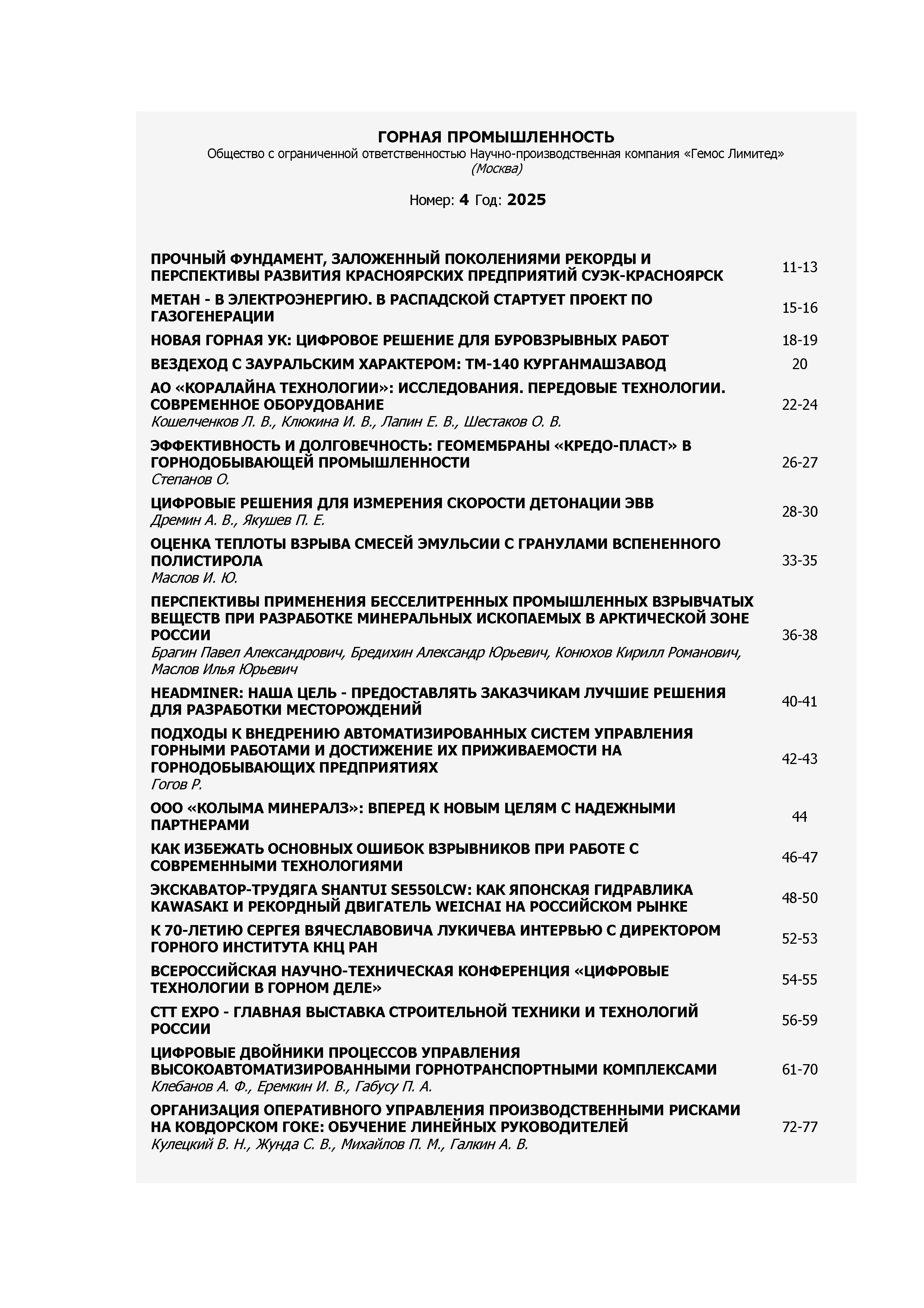 02.10.2025-14:50 Горная промышленность 2025 N 4 Горная промышленность 2025 N 4 2025 5 ,