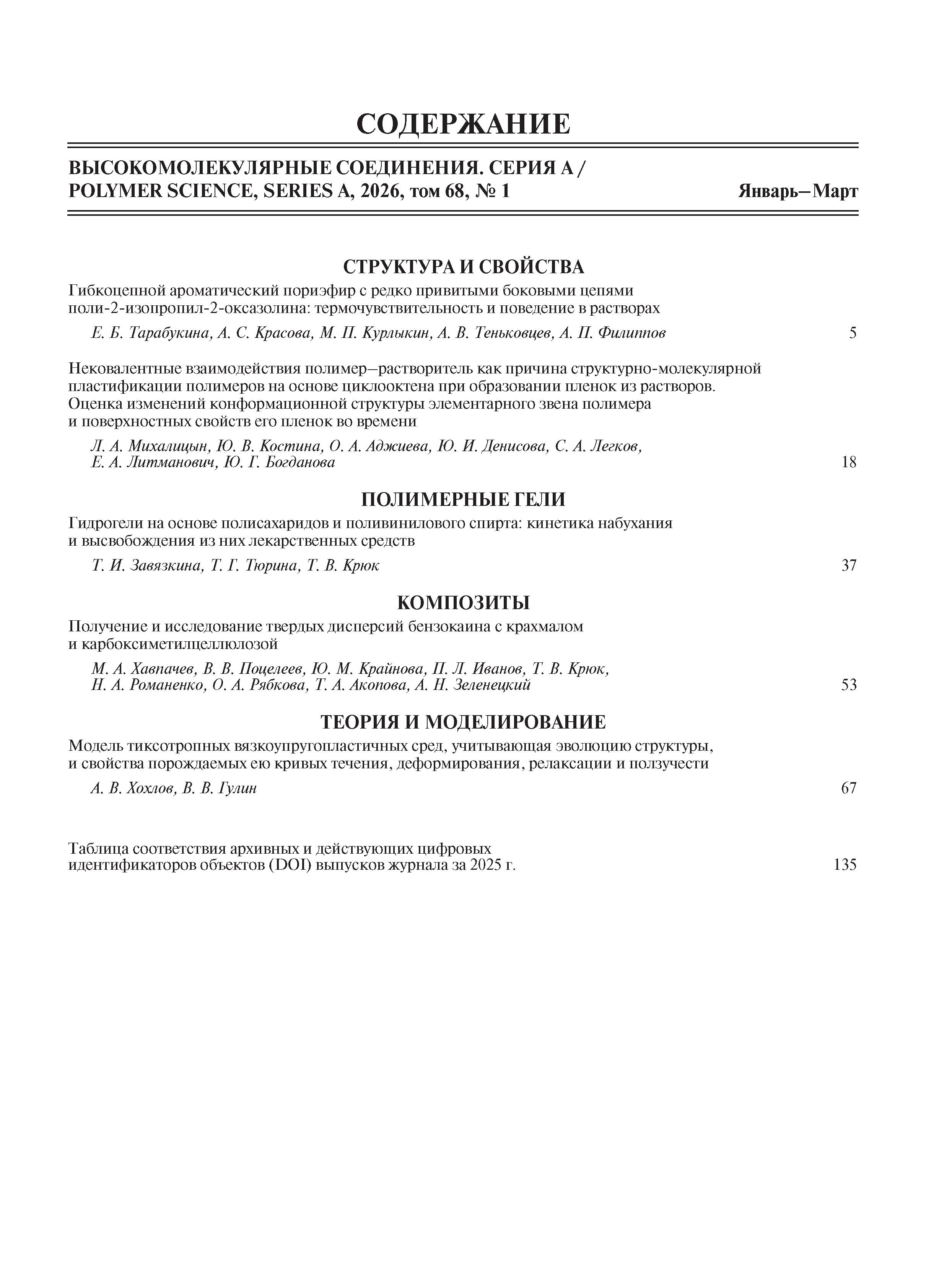 Высокомолекулярные соединения. Серия С. 2026 Т. 68 № 1 |