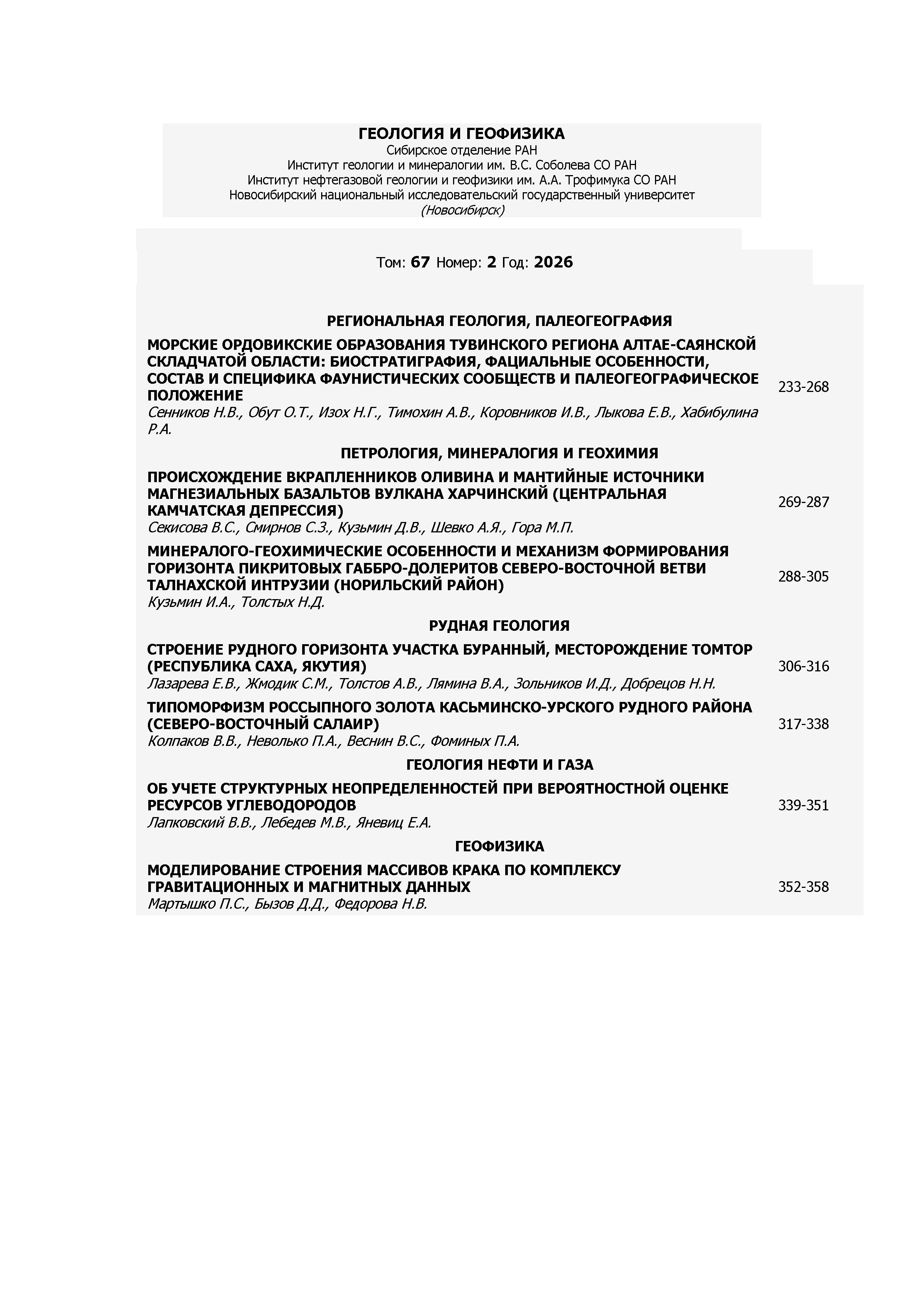 Геология и геофизика 2026 T.67 N 2 | Геология и геофизика 2026 T.67 N 2 | 2026 | 2 |