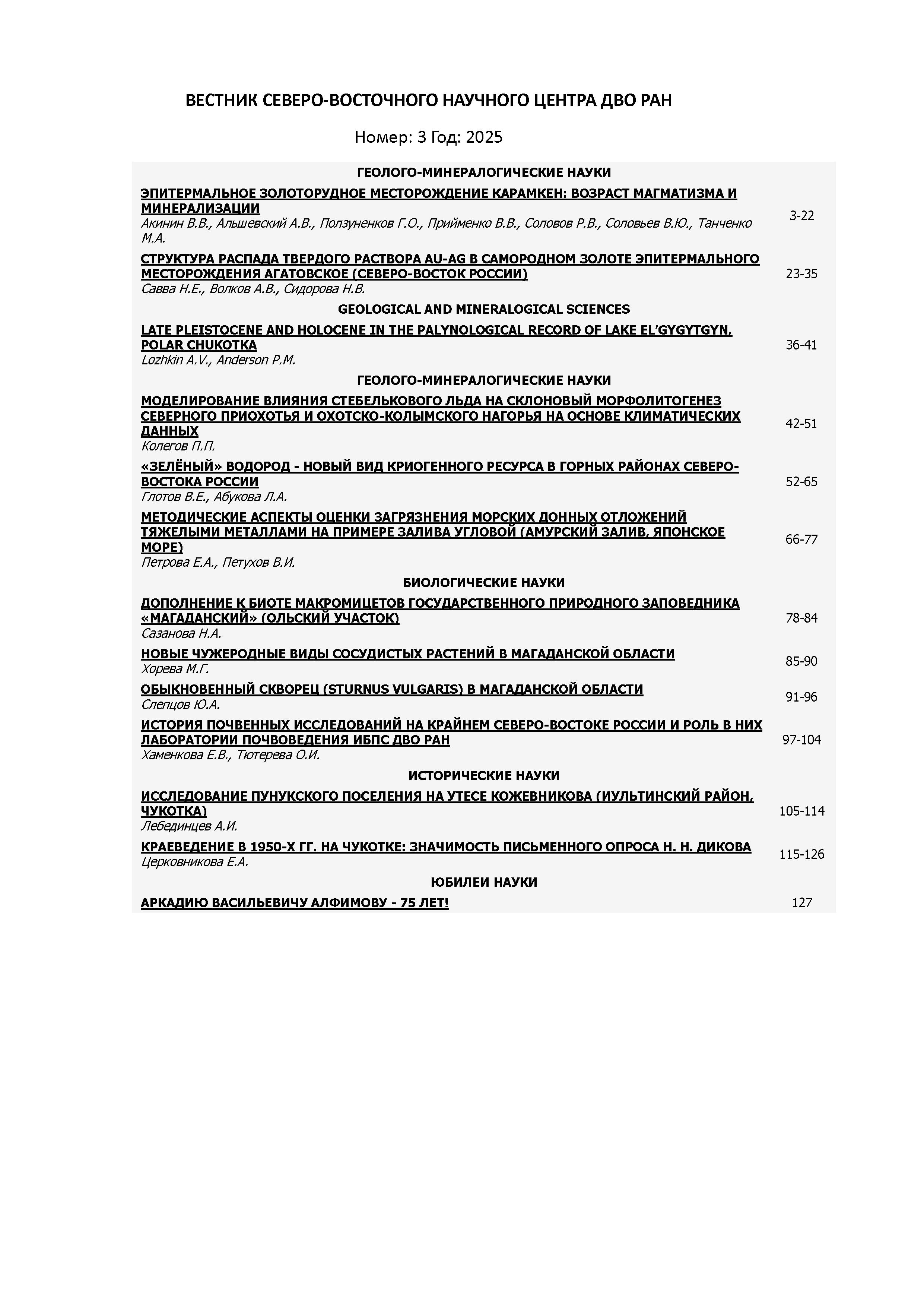 Вестник Северо-Восточного науч. центра ДВО РАН 2025 N 3 |