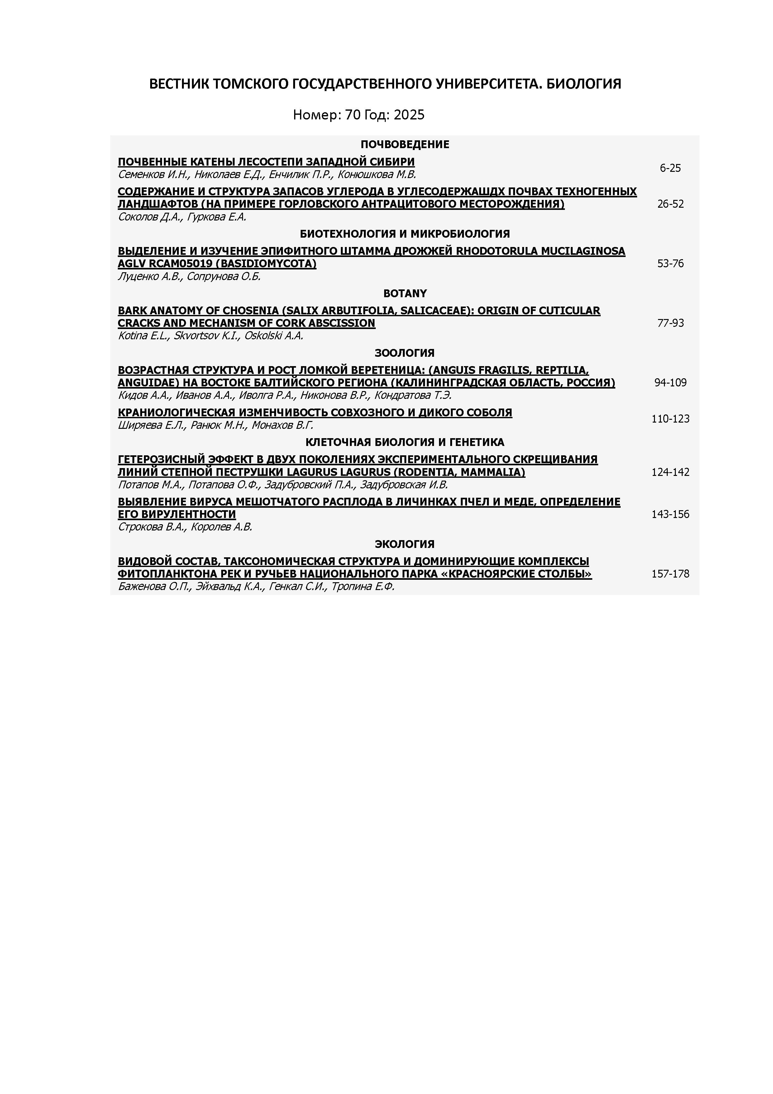 Вестник Томского государственного университета. Биология 2025 N 70 |
