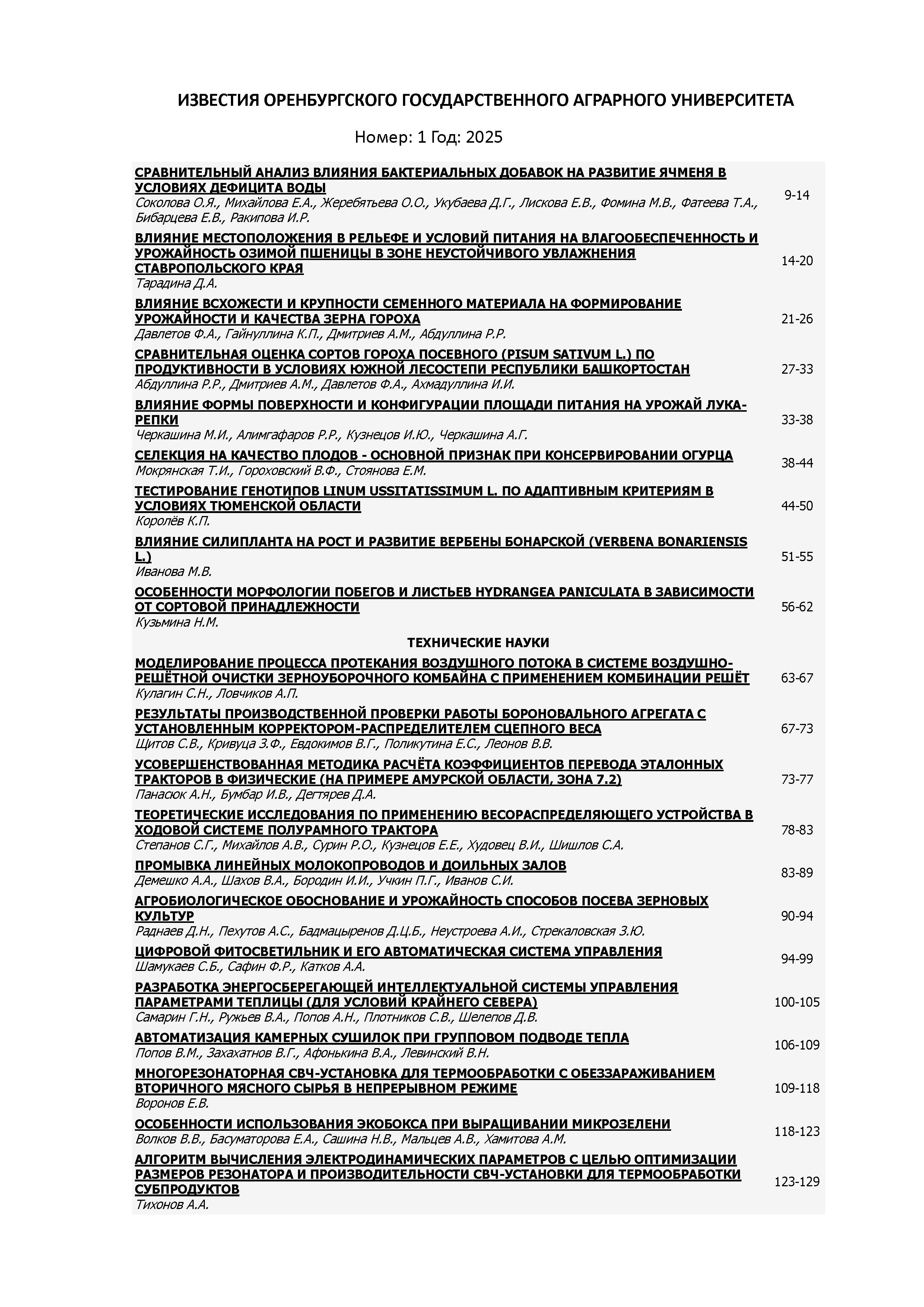 10.11.2025-9:31 Известия Оренбургского государственного аграрного университета 2025 N 1 Известия Оренбургского государственного аграрного университета 2025 N 1 2025 1 , ,