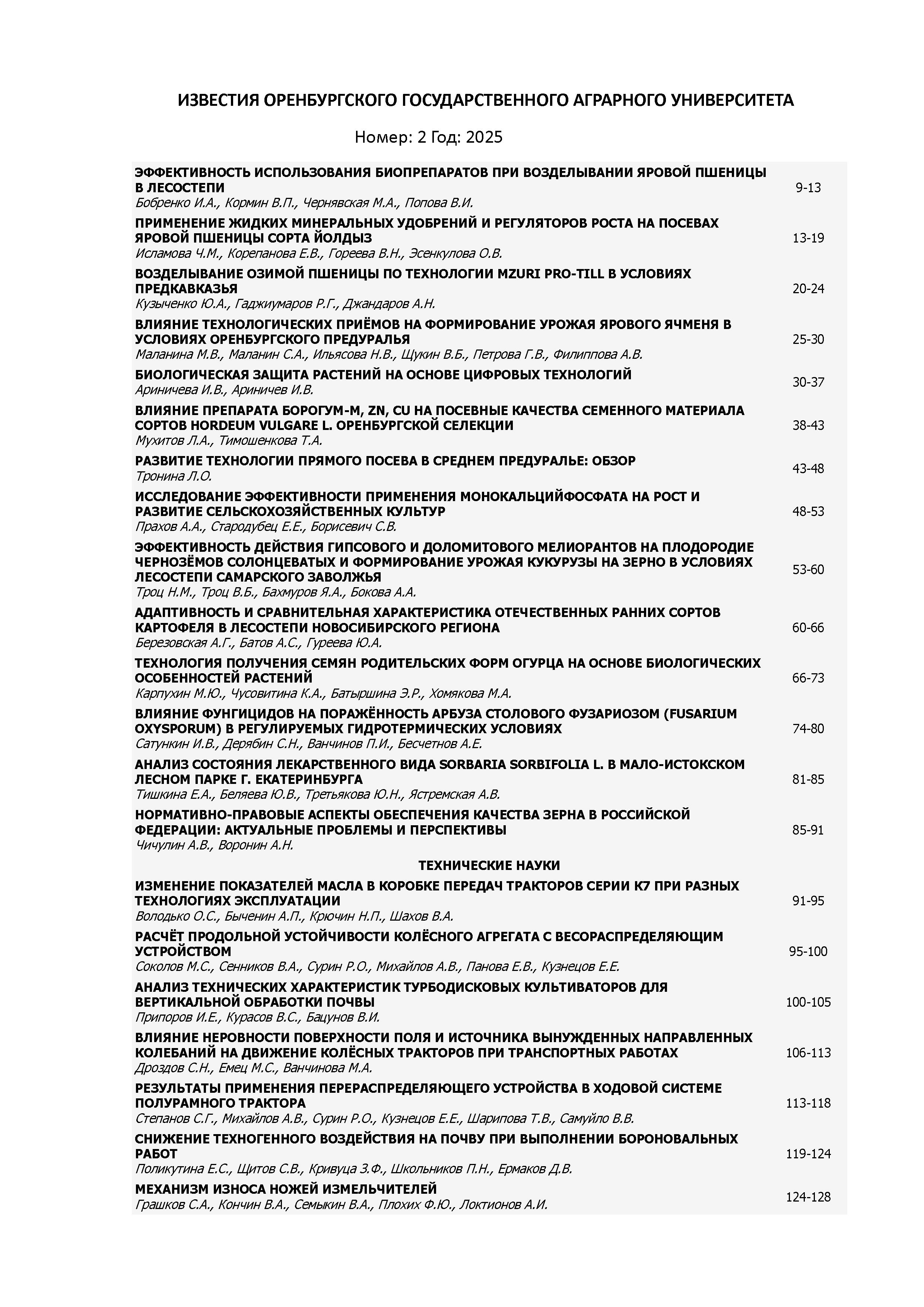 10.11.2025-10:46 Известия Оренбургского государственного аграрного университета 2025 N 2 Известия Оренбургского государственного аграрного университета 2025 N 2 2025 2 , ,