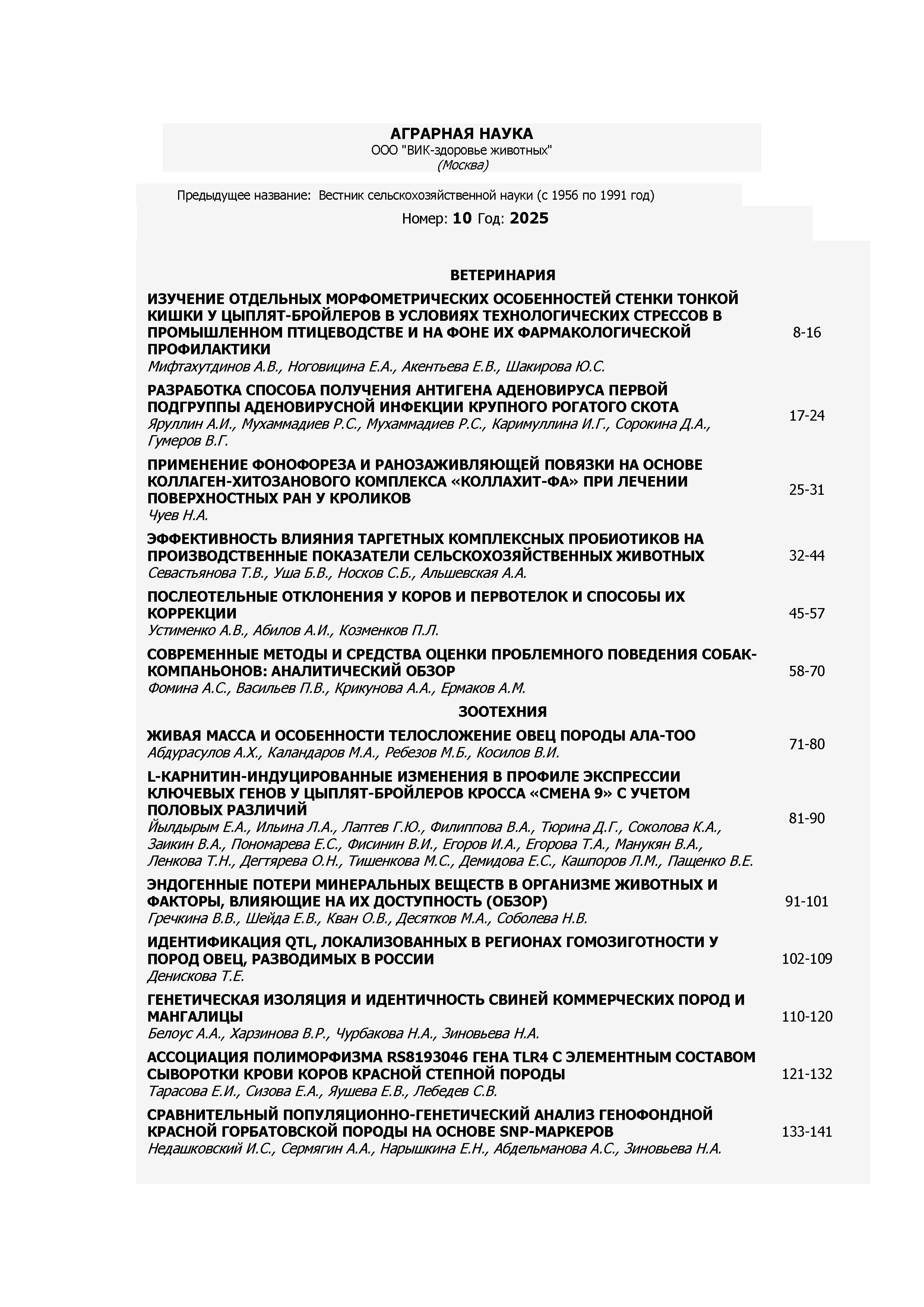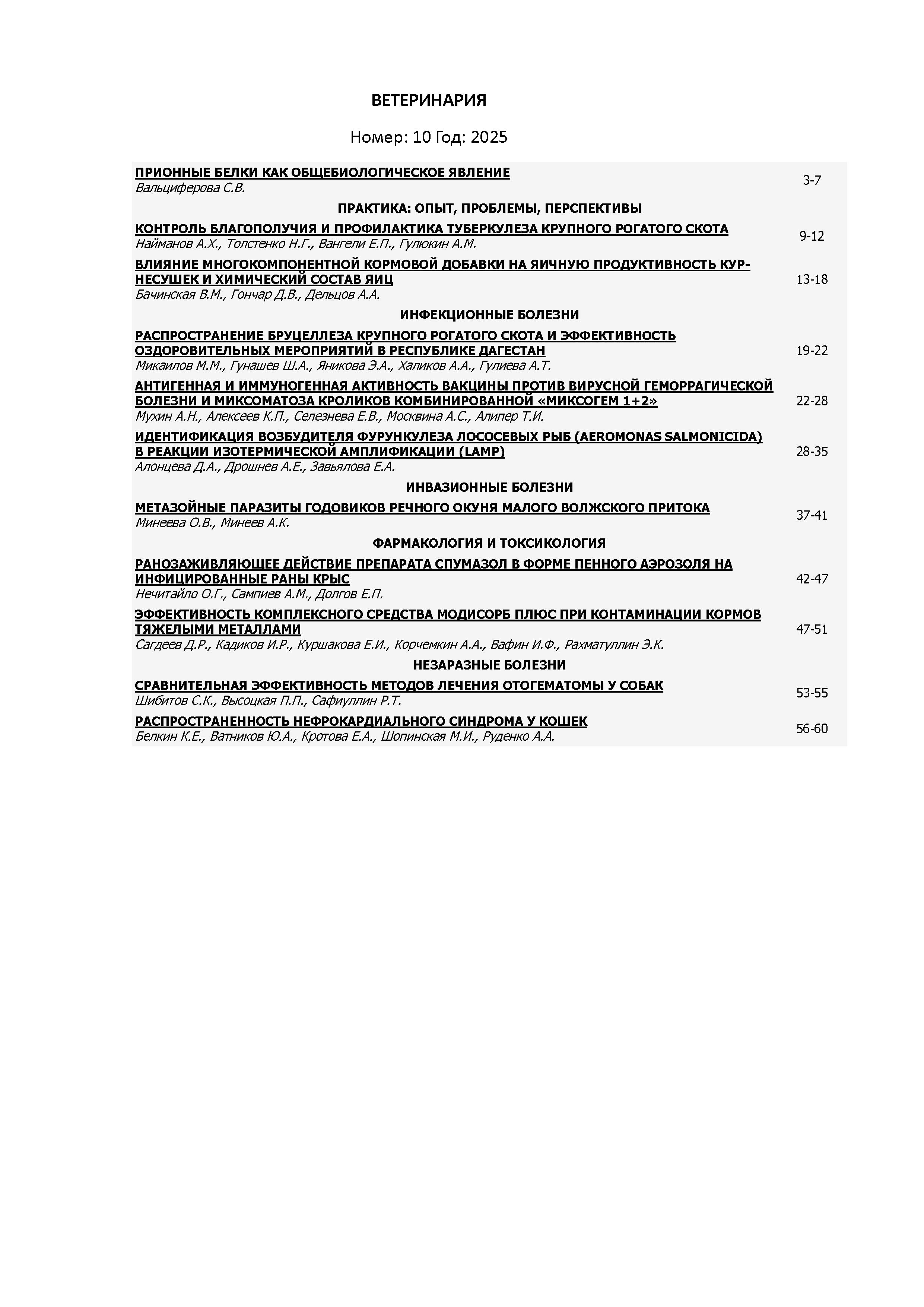 Ветеринария 2025 N 10 | Ветеринария 2025 N 10 | 2025 | 10 |