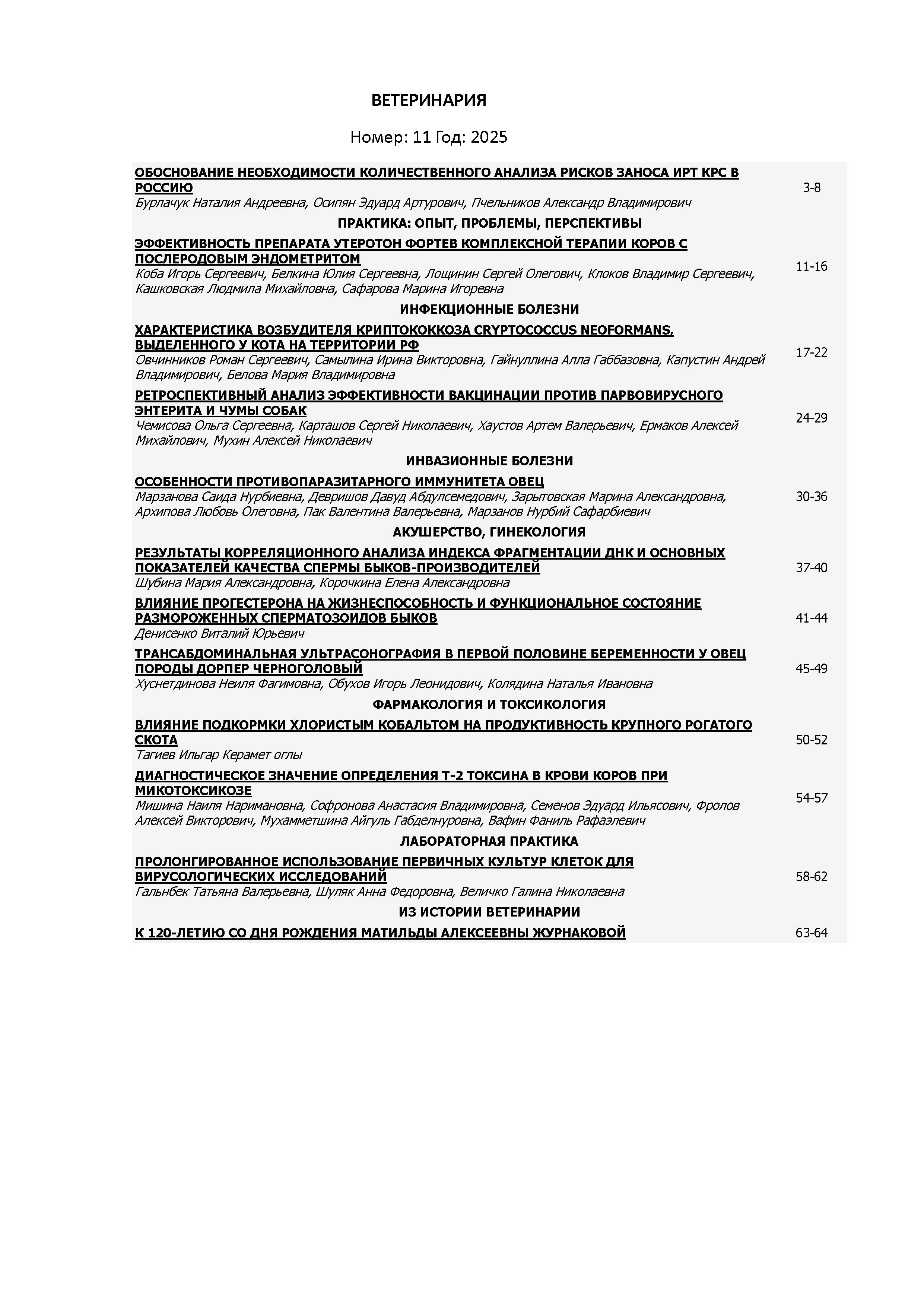 Ветеринария 2025 N 11 | Ветеринария 2025 N 11 | 2025 | 11 |