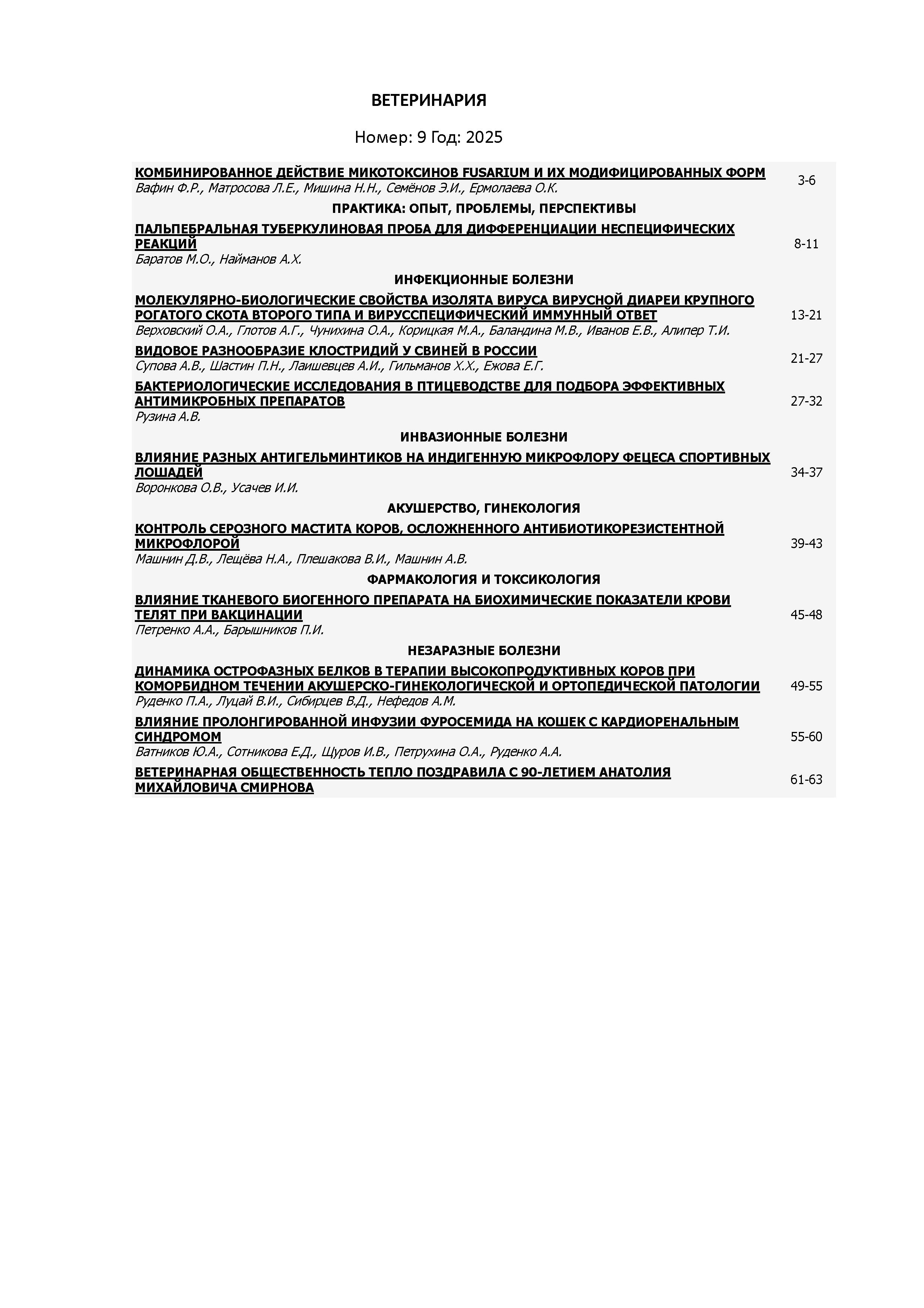 Ветеринария 2025 N 9 | Ветеринария 2025 N 9 | 2025 | 9 |