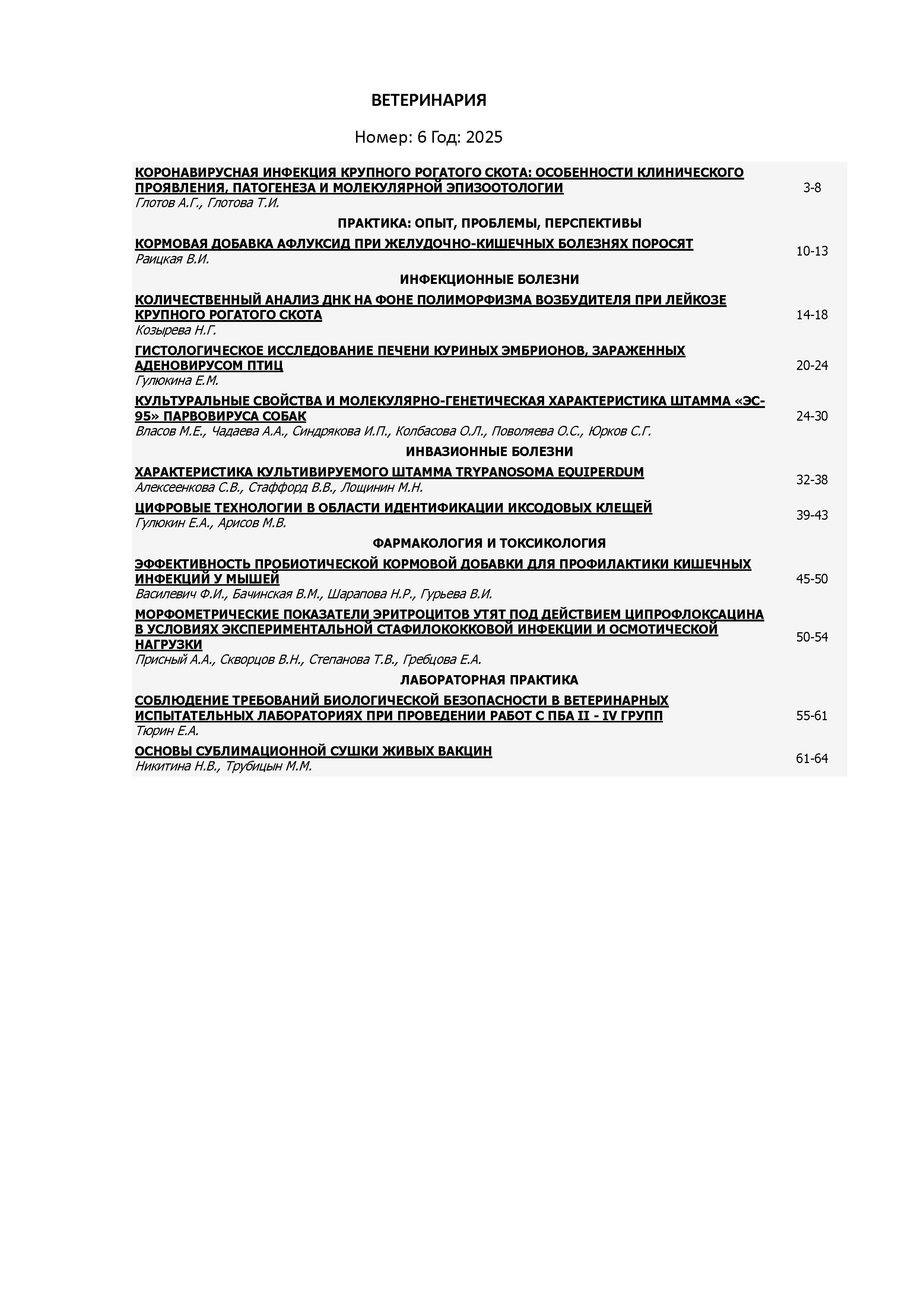 Ветеринария 2025 N 6 | Ветеринария 2025 N 6 | 2025 | 6 |