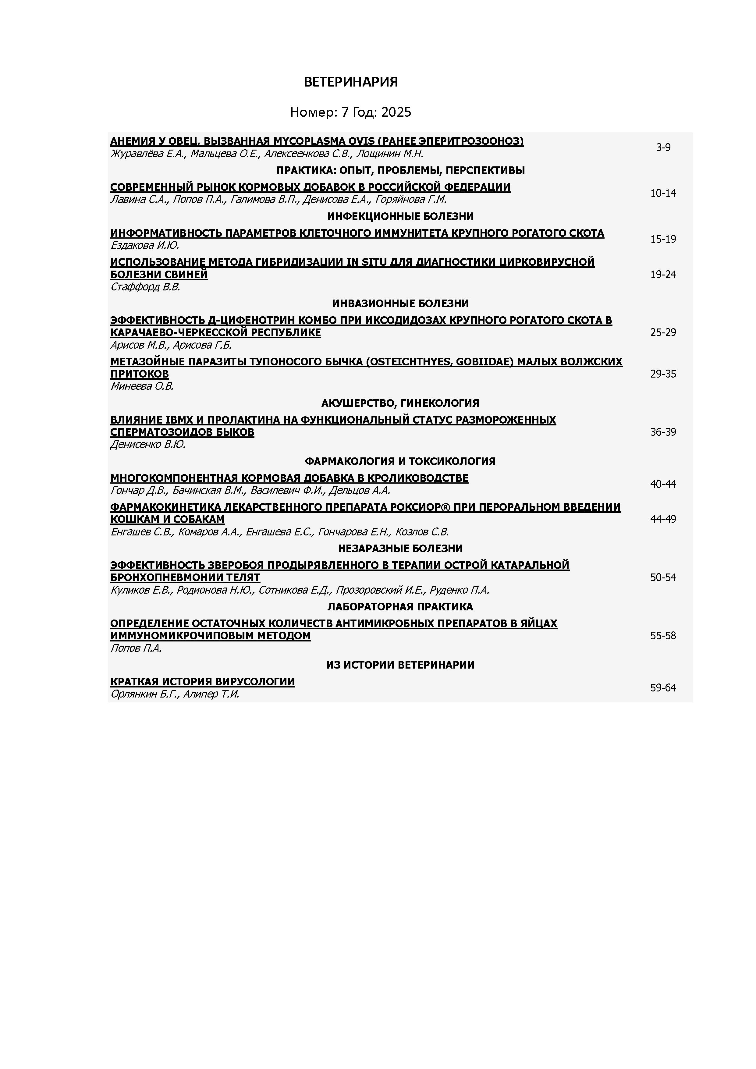 Ветеринария 2025 N 7 | Ветеринария 2025 N 7 | 2025 | 7 |