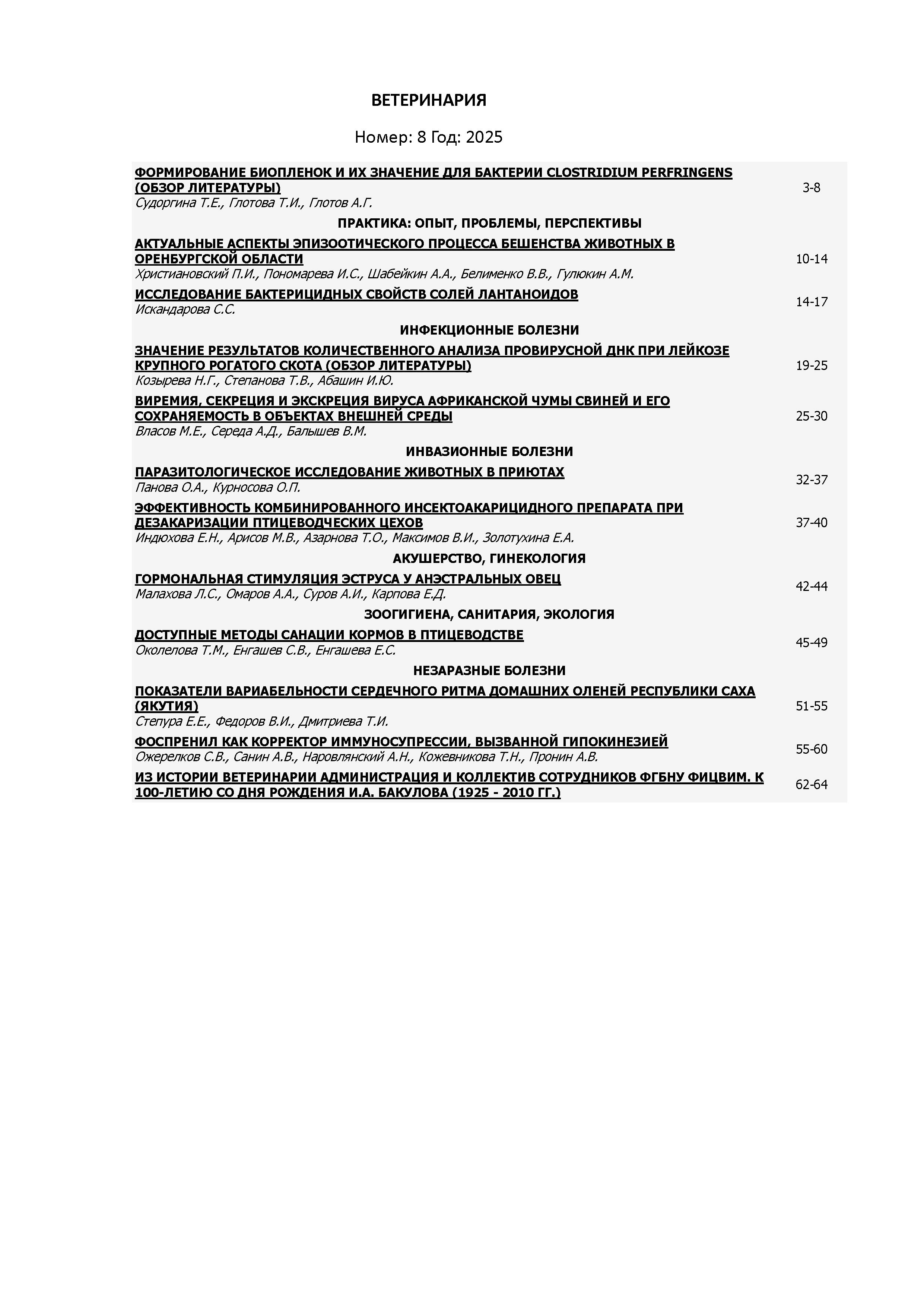 Ветеринария 2025 N 8 | Ветеринария 2025 N 8 | 2025 | 8 |