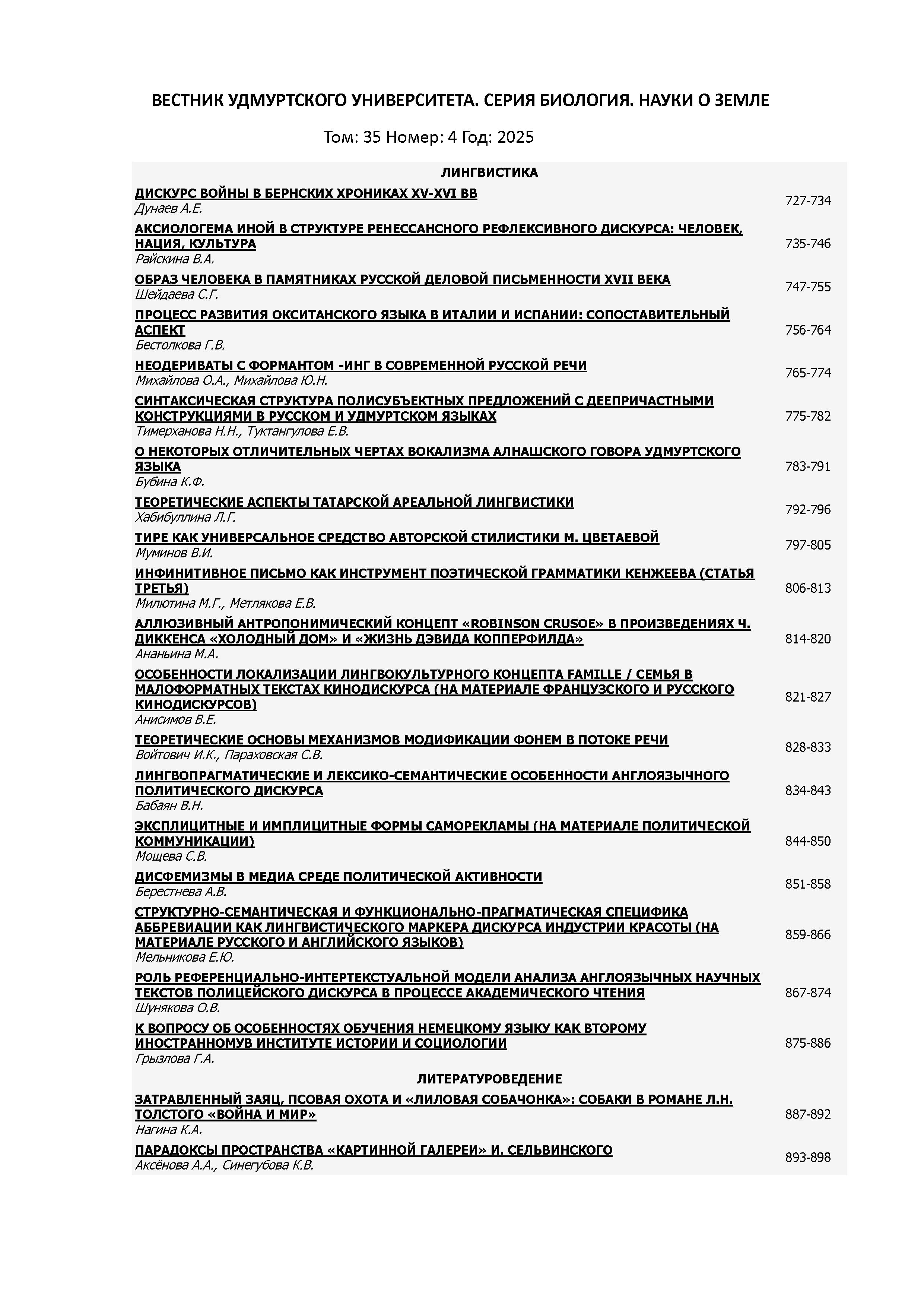 Вестник Удмуртского университета. Серия: История и филология 2025 № 4 |