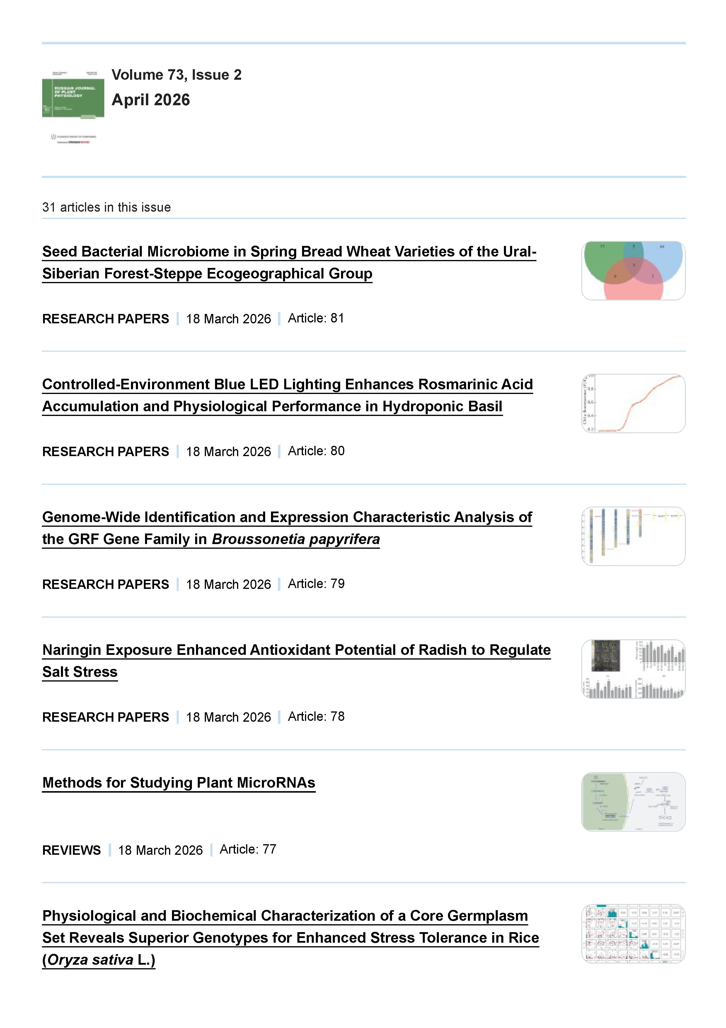 26.03.2026-16:59 Russian Journal of Plant Physiology 2026 Vol. 73 № 2 Russian Journal of Plant Physiology 2026 Vol. 73 № 2 2026 2 , , , ,