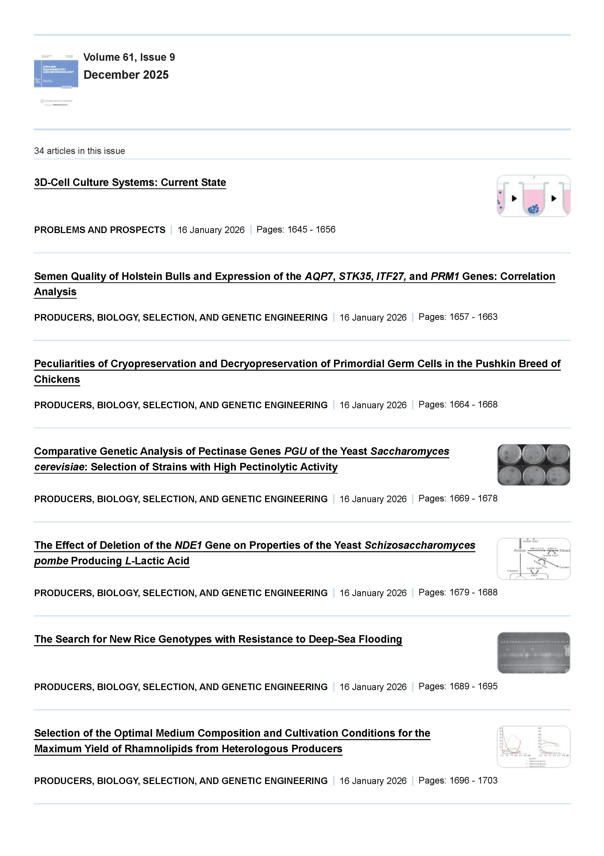 Applied Biochemistry and Microbiology 2025 Vol. 61 Is. 9 |