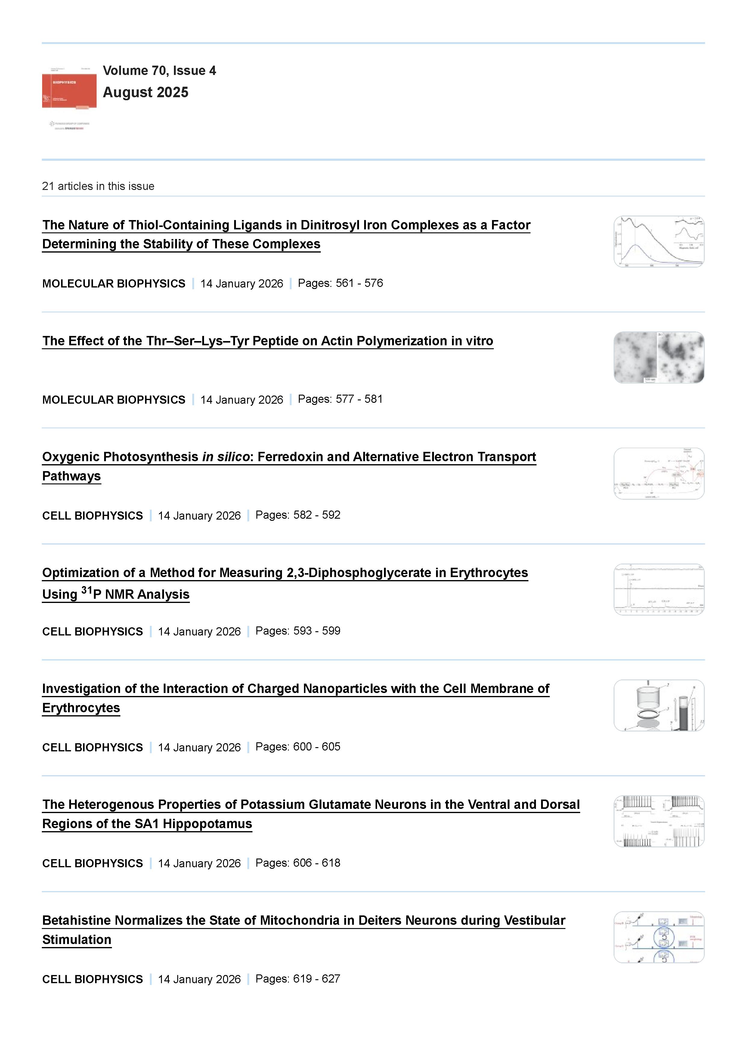 Biophysics 2025 Vol. 70 Is. 4 |