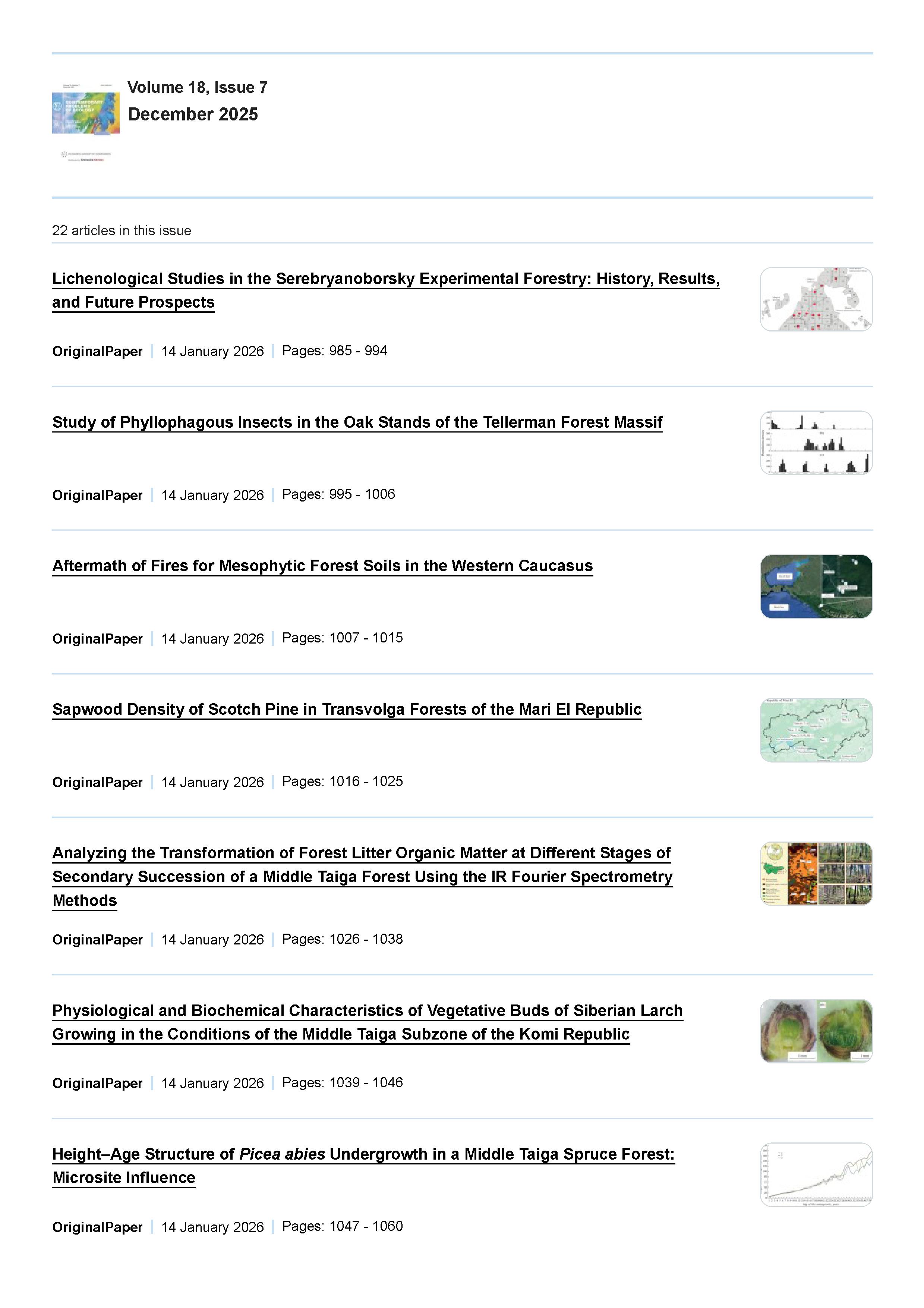 Contemporary Problems of Ecology 2025 Vol. 18 Is. 7 |