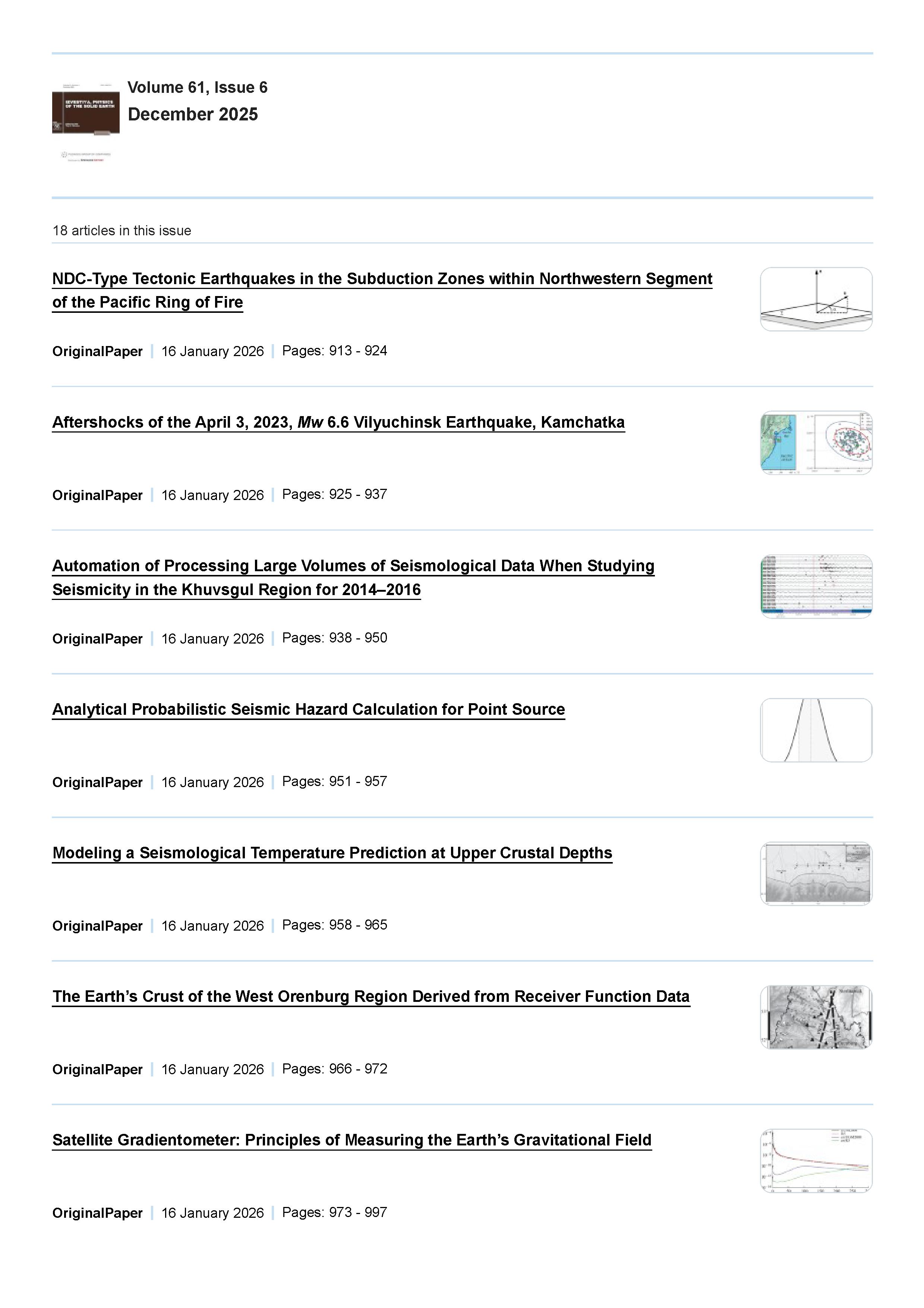 Izvestiya, Physics of the Solid Earth 2025 Vol. 61 Is. 6 |
