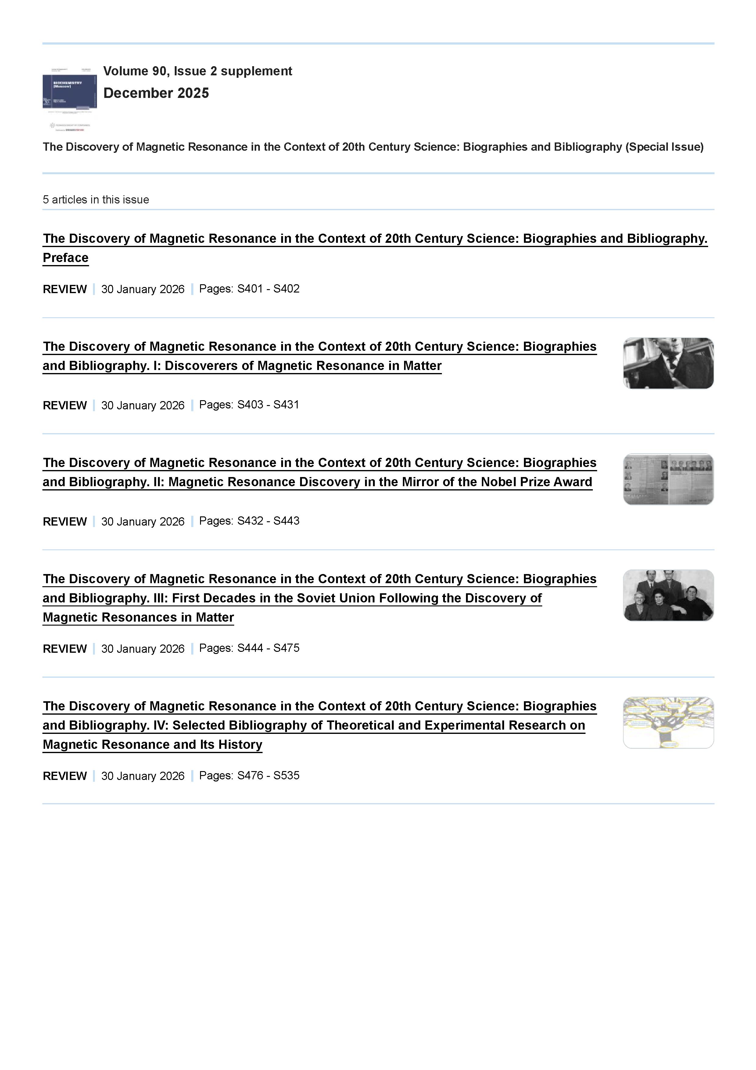Biochemistry (Moscow) 2025 Vol. 90 Is. 2 supplement : The Discovery of Magnetic Resonance in the Context of 20th Century Science: Biographies and Bibliography (Special Issue) |