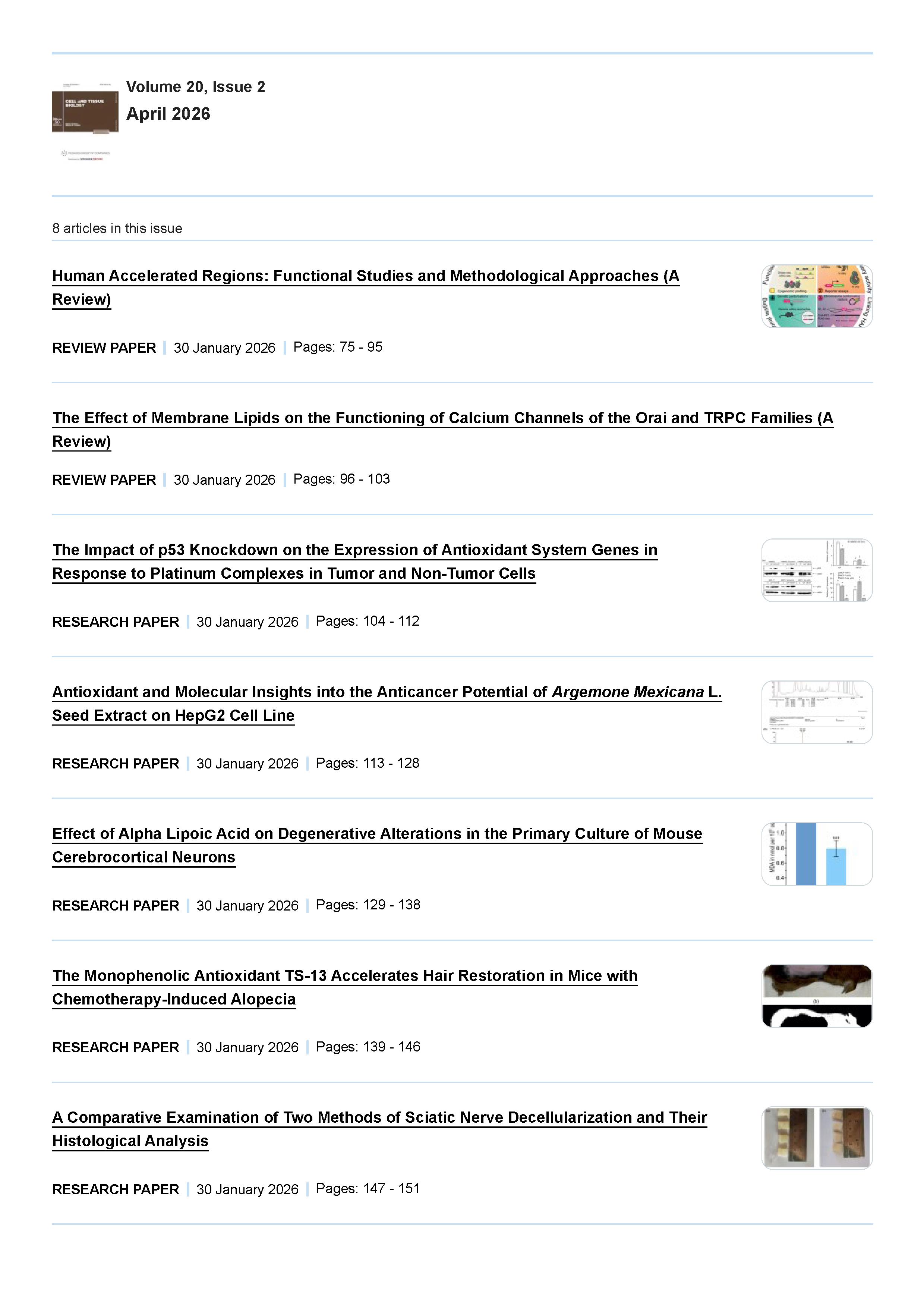 Cell and Tissue Biology 2026 Vol. 20 Is. 2 |