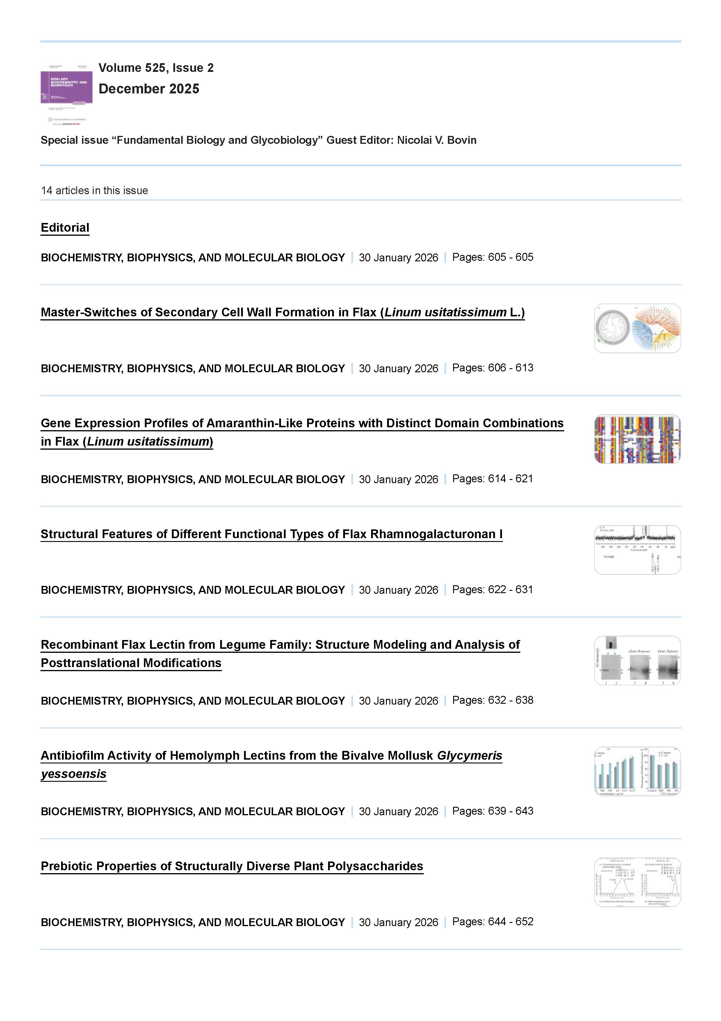 Doklady Biological Sciences 2025 Vol. 525 Is. 2 : Special issue “Fundamental Biology and Glycobiology” Guest Editor: Nicolai V. Bovin |
