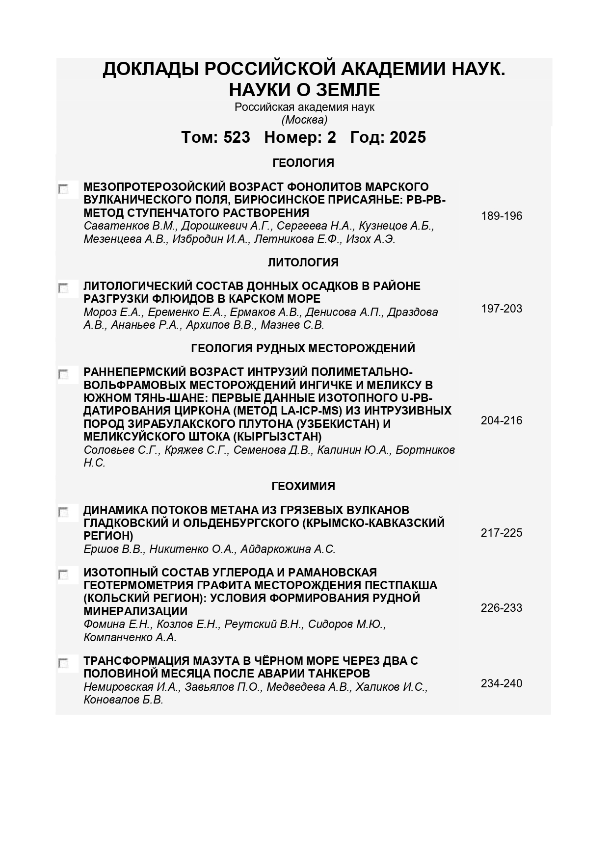 20.11.2025-16:45 Доклады Российской академии наук. Науки о Земле 2025 Т.523 № 2 Доклады Российской академии наук. Науки о Земле 2025 Т.523 № 2 2025 8 , ,