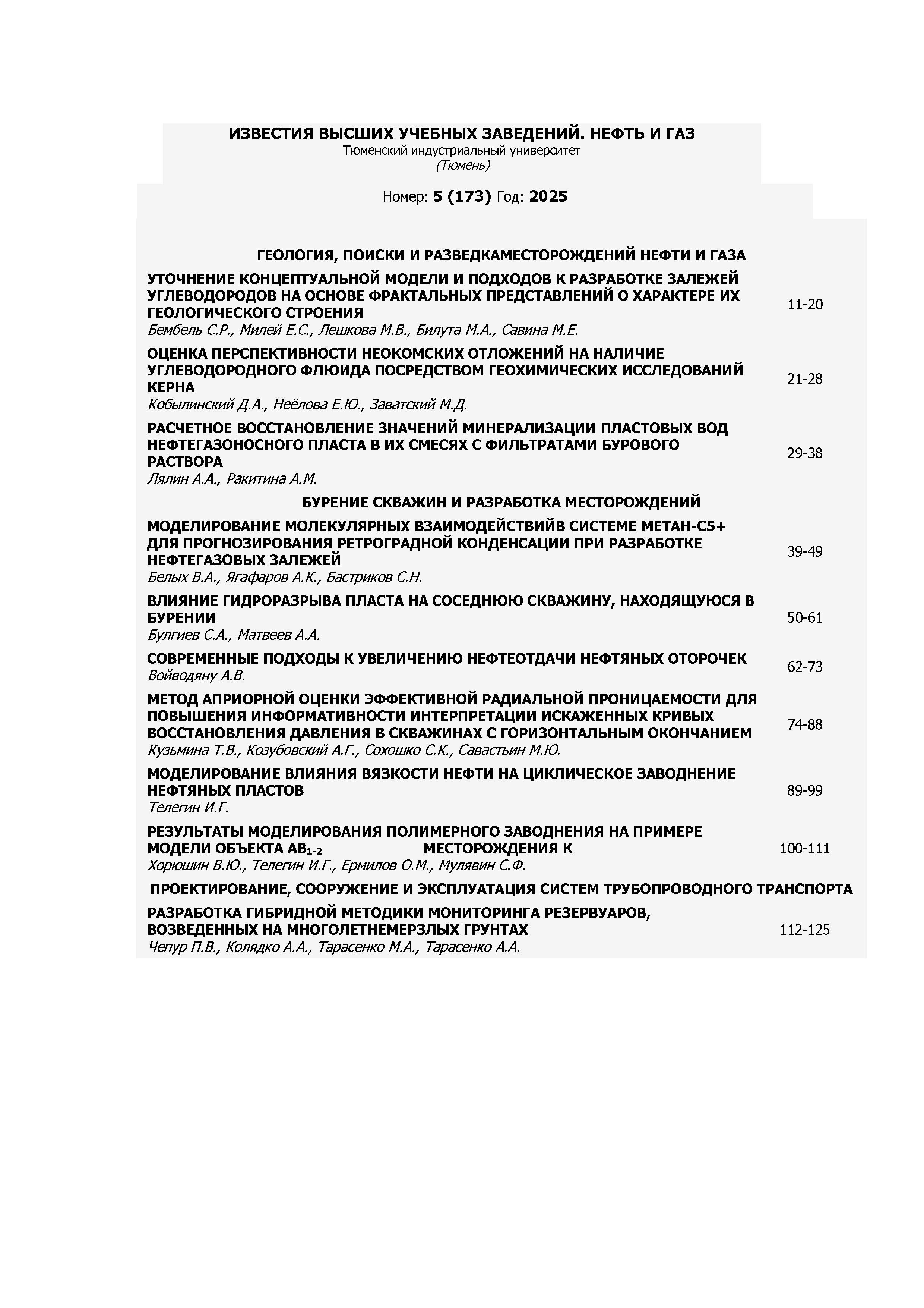 Известия ВУЗов. Сер. Нефть и газ 2025 N 5 |