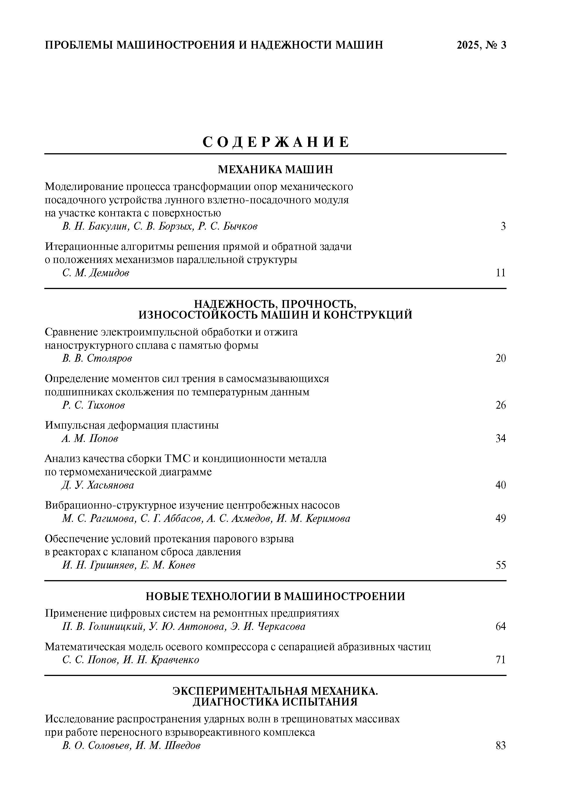 Проблемы машиностроения и надежности машин 2025 № 3 |
