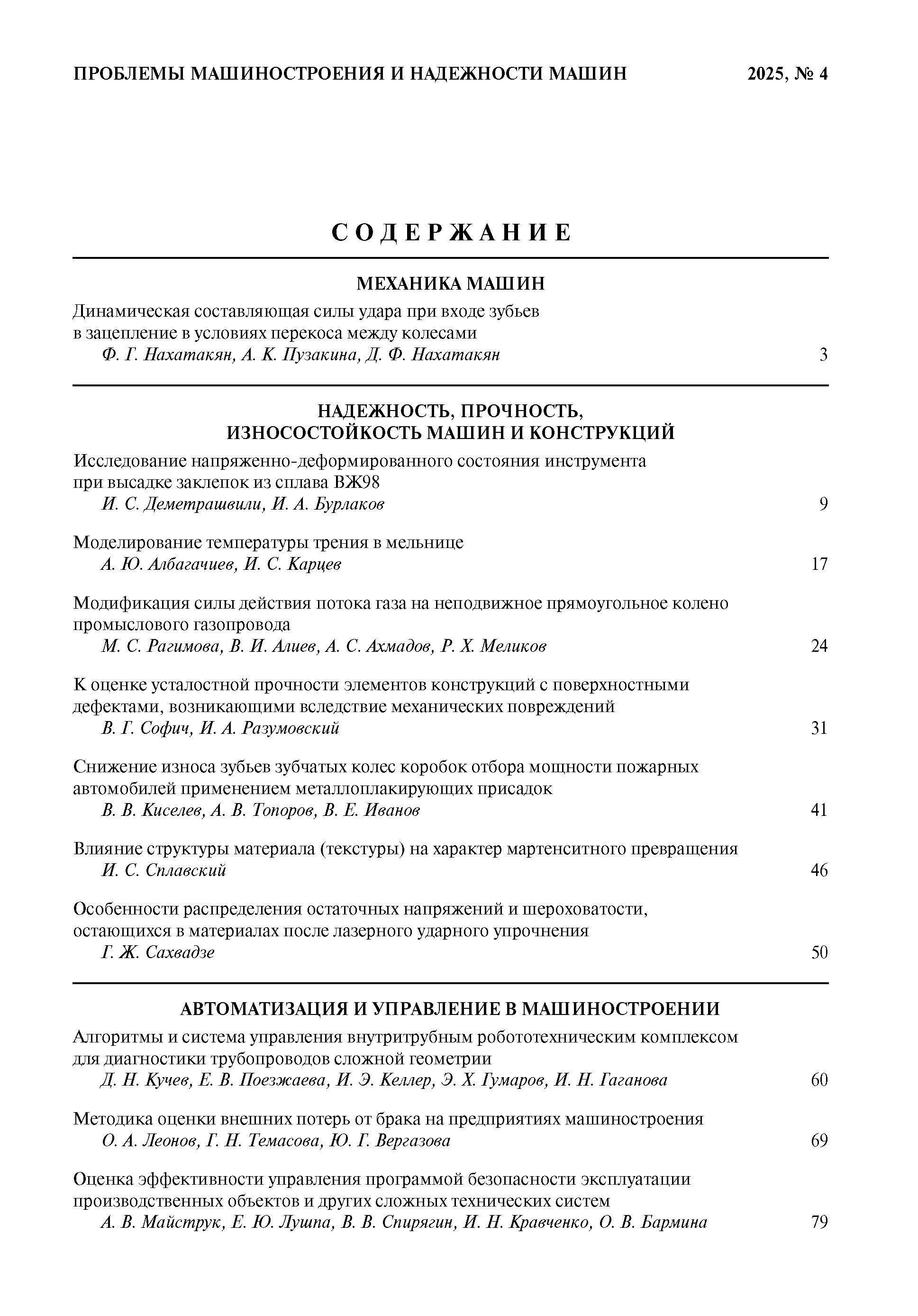 Проблемы машиностроения и надежности машин 2025 № 4 |