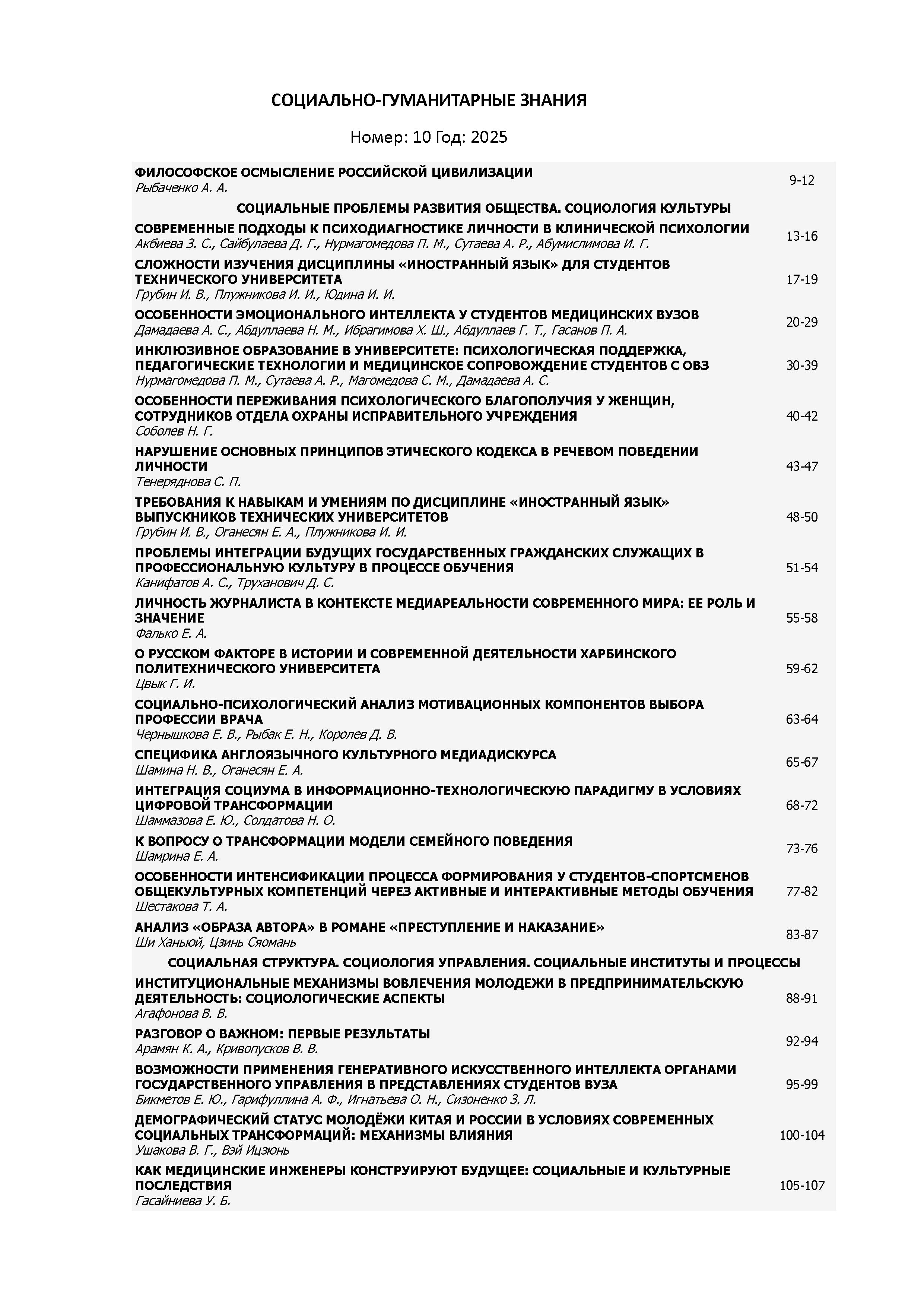 Социально-гуманитарные знания 2025 N 10 | Социально-гуманитарные знания 2025 N 10 | 2025 | 10 |