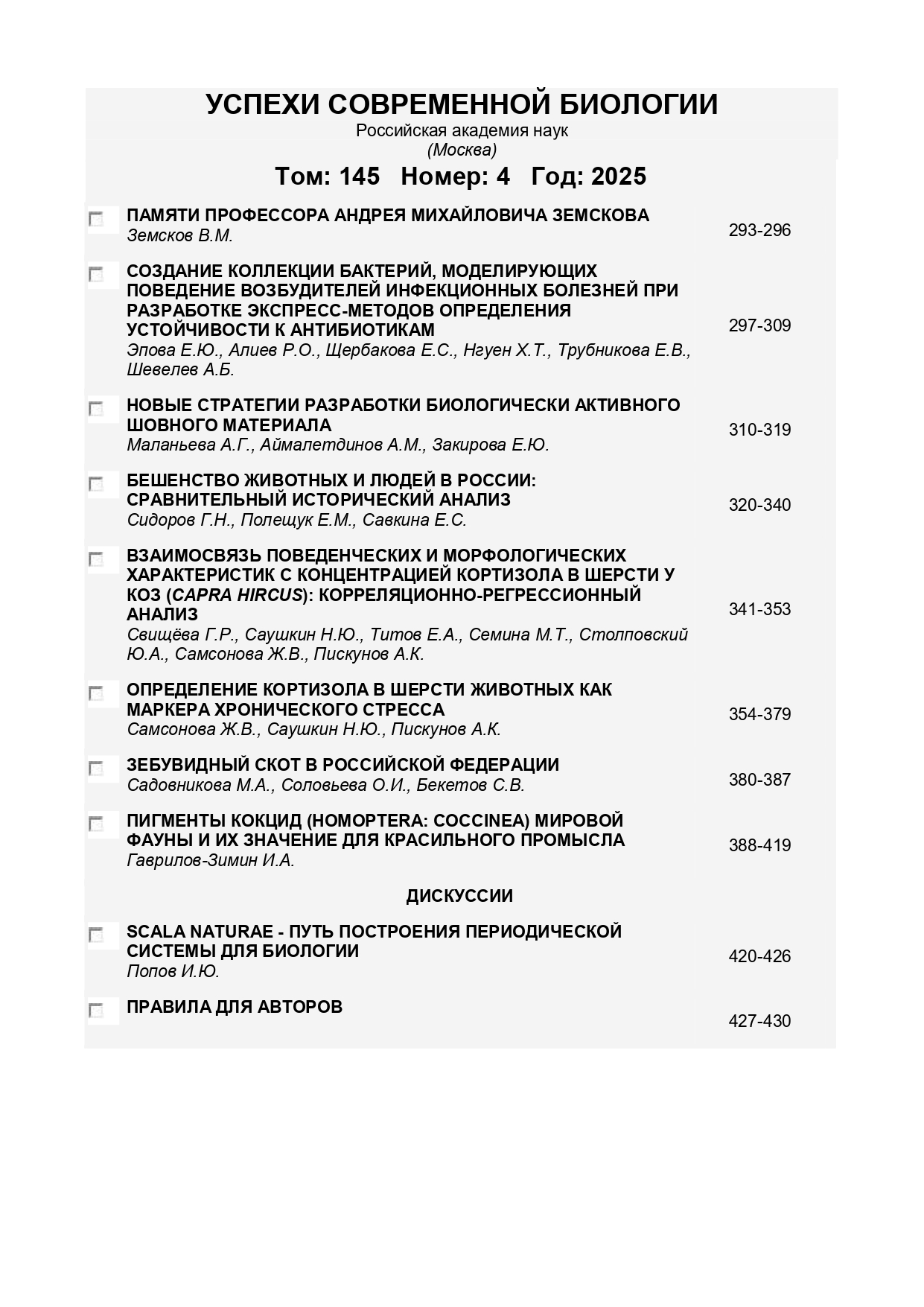 20.11.2025-16:49 Успехи современной биологии 2025 Т.145 № 4 Успехи современной биологии 2025 Т.145 № 4 2025 4