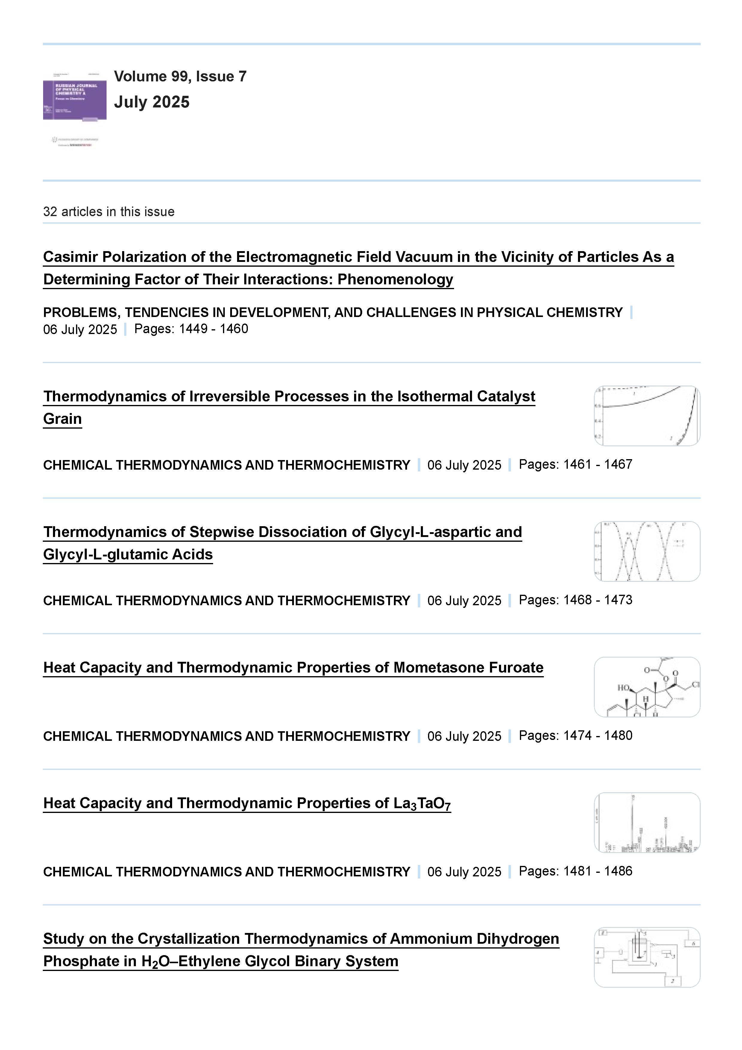 Russian Journal of Physical Chemistry A. 2025 Vol. 99 № 7 |