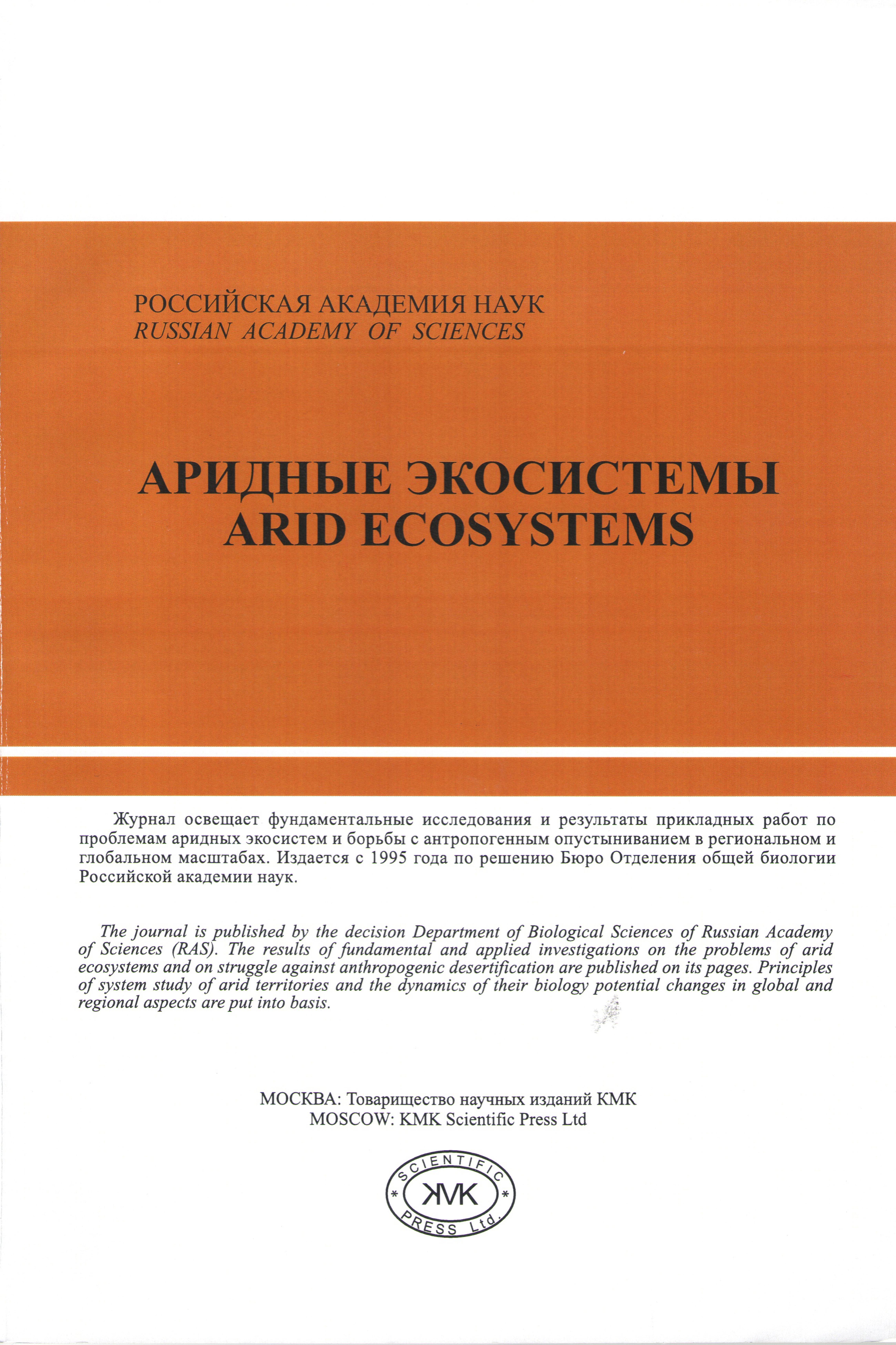 Аридные экосистемы 2025 N 4 | Аридные экосистемы 2025 N 4 | 2025 | 4 |