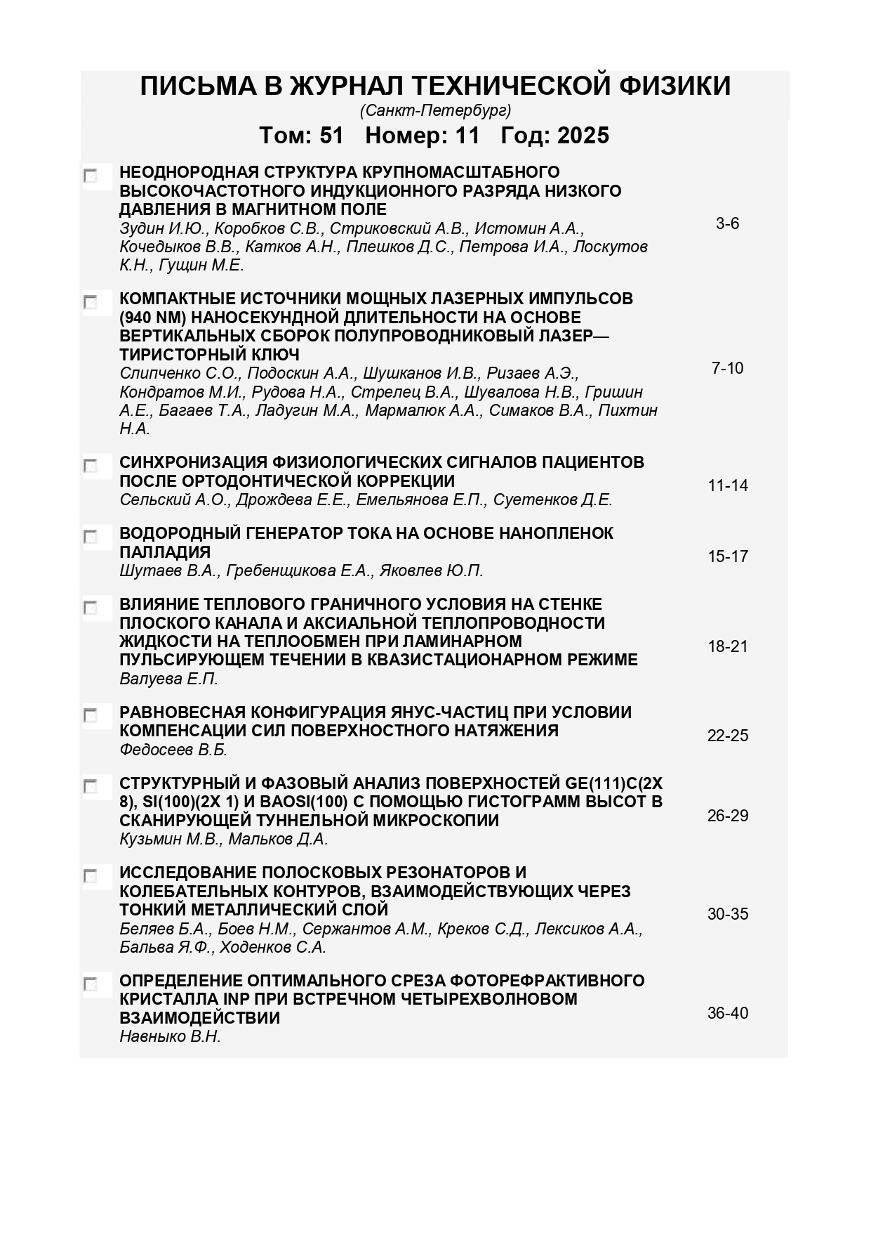 Письма в журнал технической физики 2025 T.51 №11 |