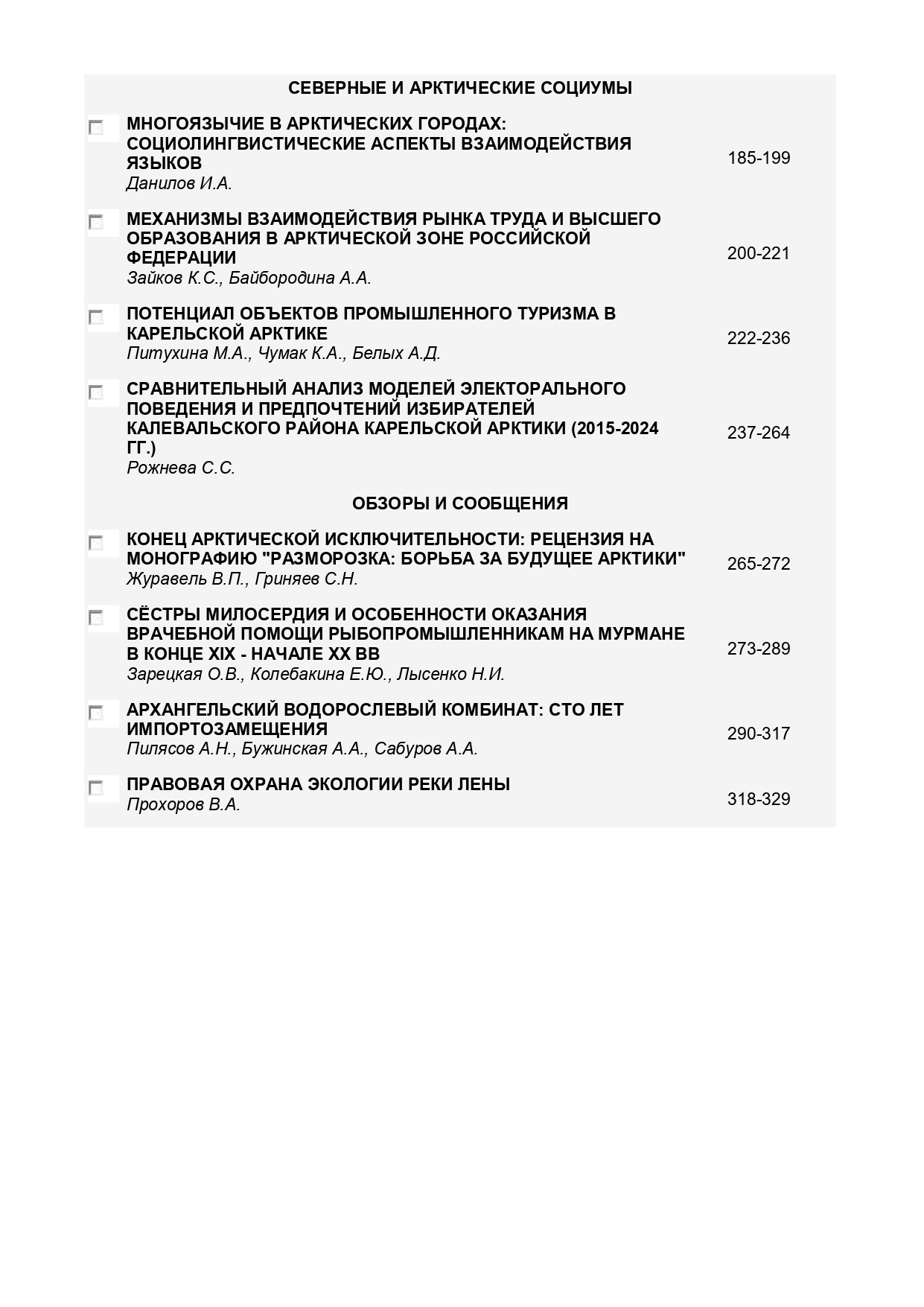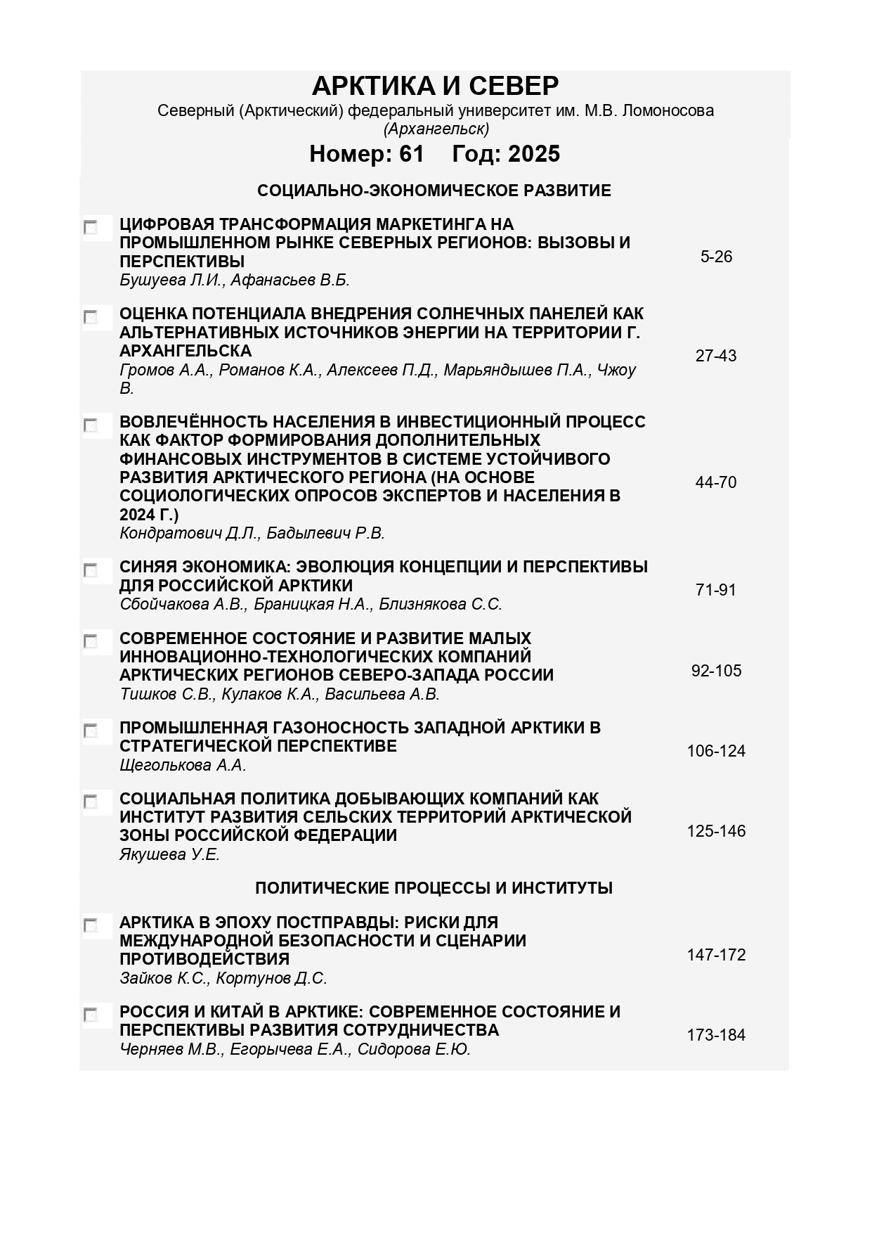Арктика и Север 2025 № 61 | Арктика и Север 2025 № 61 | 2025 | 4 |