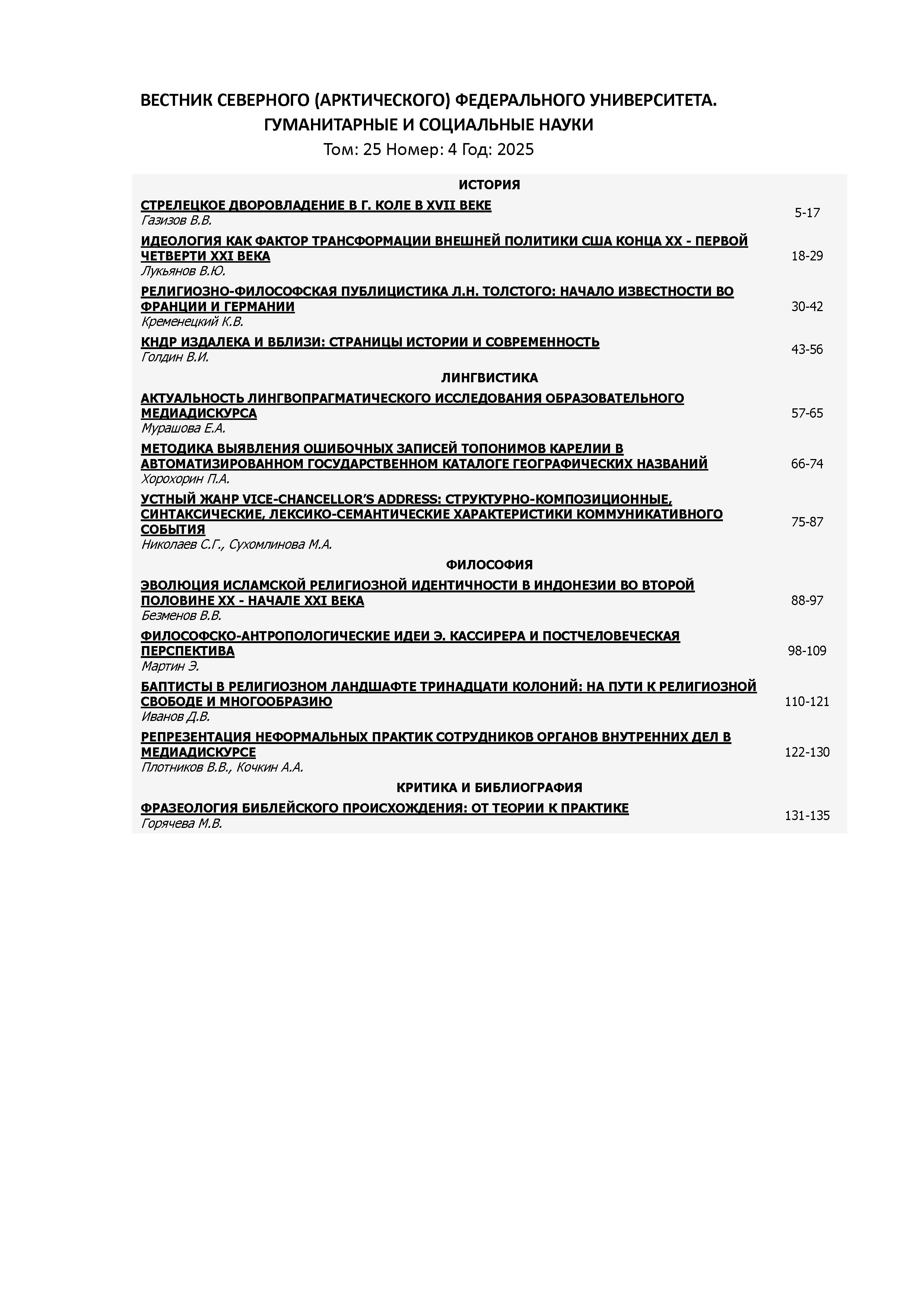 Вестник Северного (Арктического) федерального университета. Гуманитарные и социальные науки 2025 N 4 |