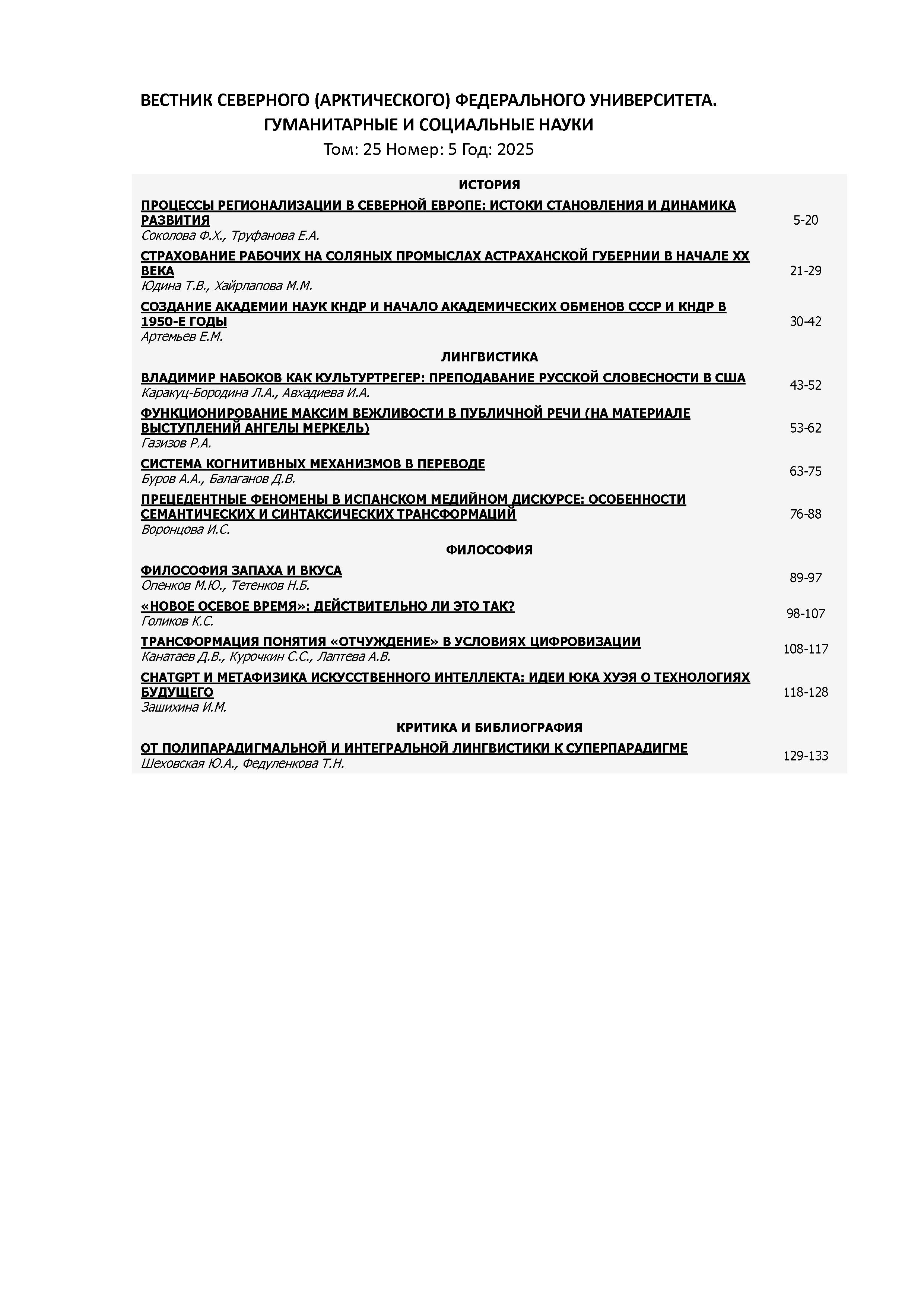 Вестник Северного (Арктического) федерального университета. Гуманитарные и социальные науки 2025 N 5 |