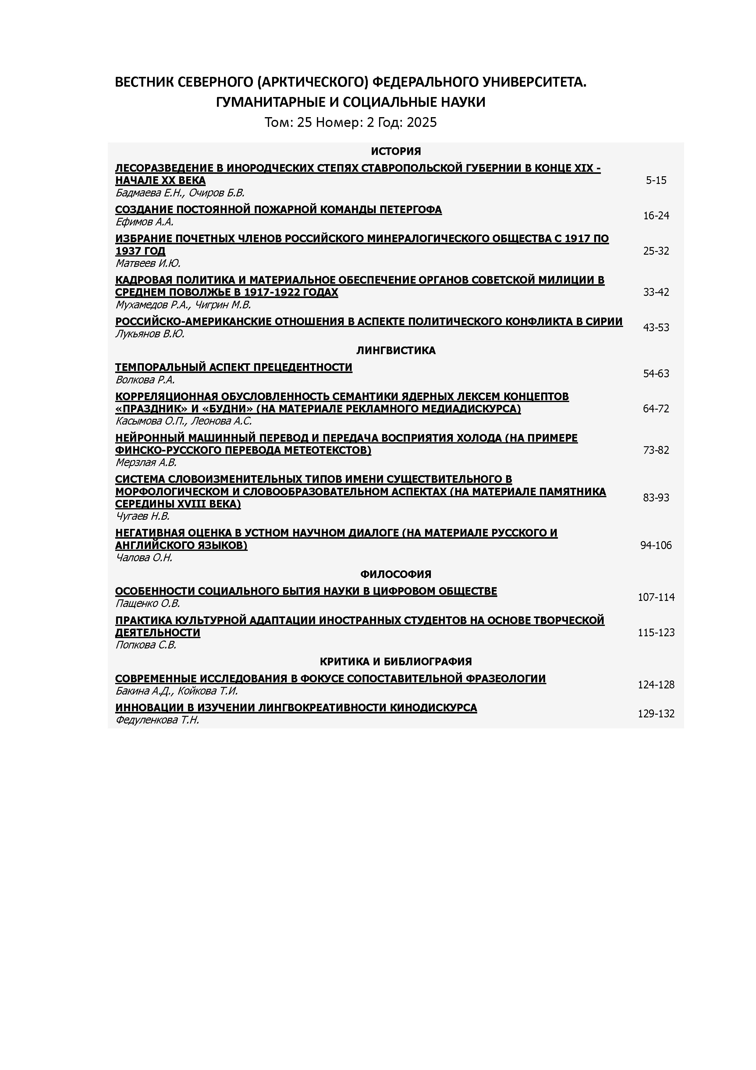 Вестник Северного (Арктического) федерального университета. Гуманитарные и социальные науки 2025 N 2 |