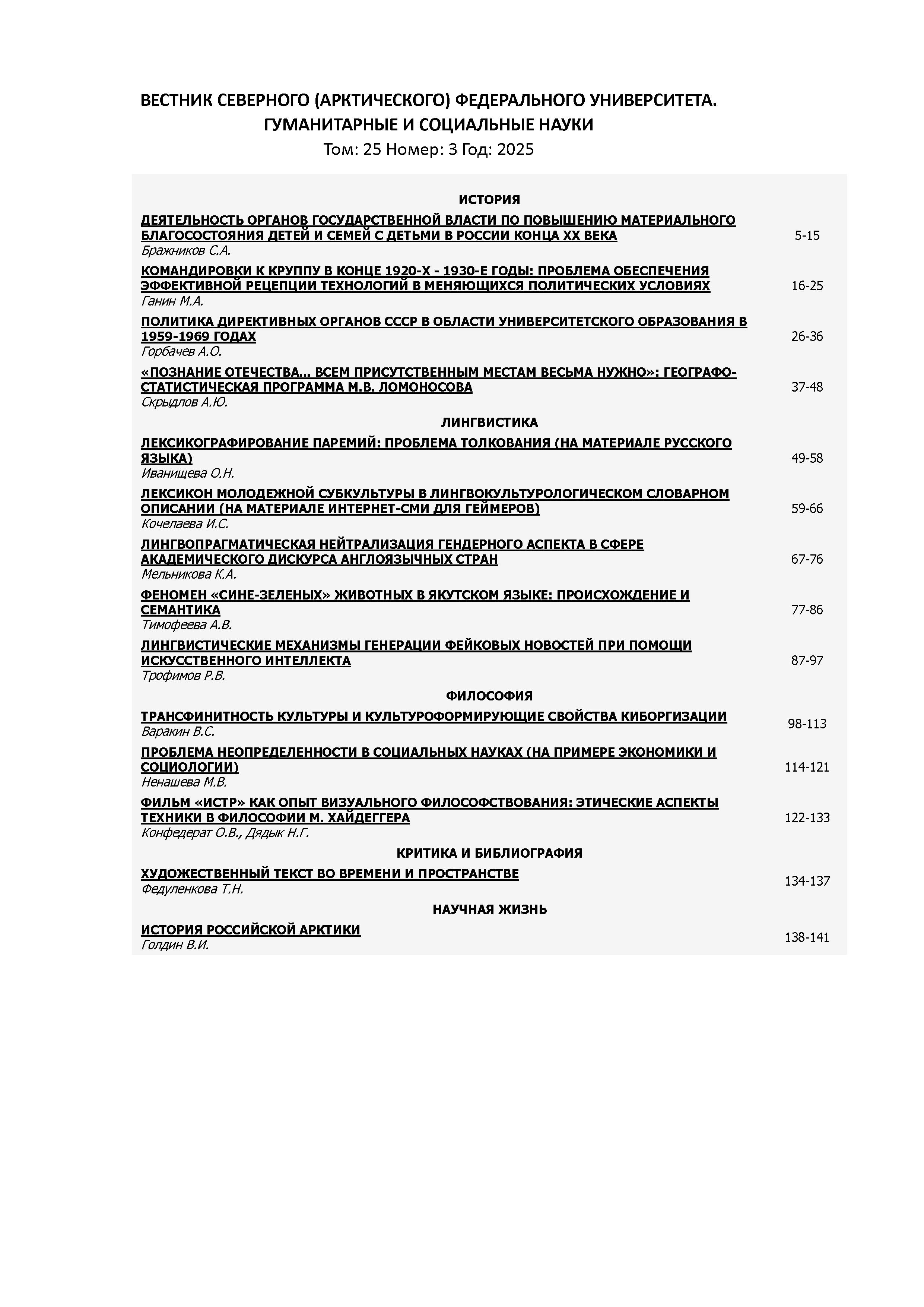 Вестник Северного (Арктического) федерального университета. Гуманитарные и социальные науки 2025 N 3 |