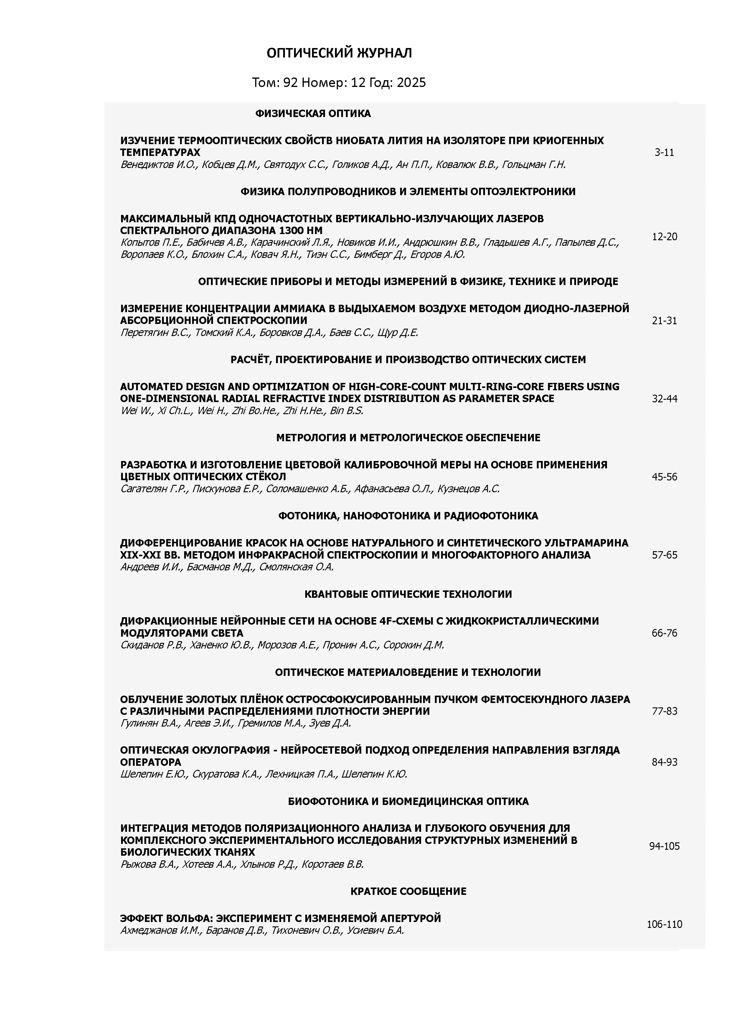Оптический журнал 2025 T.92 № 12 | Оптический журнал 2025 T.92 № 12 | 2025 | 12 |