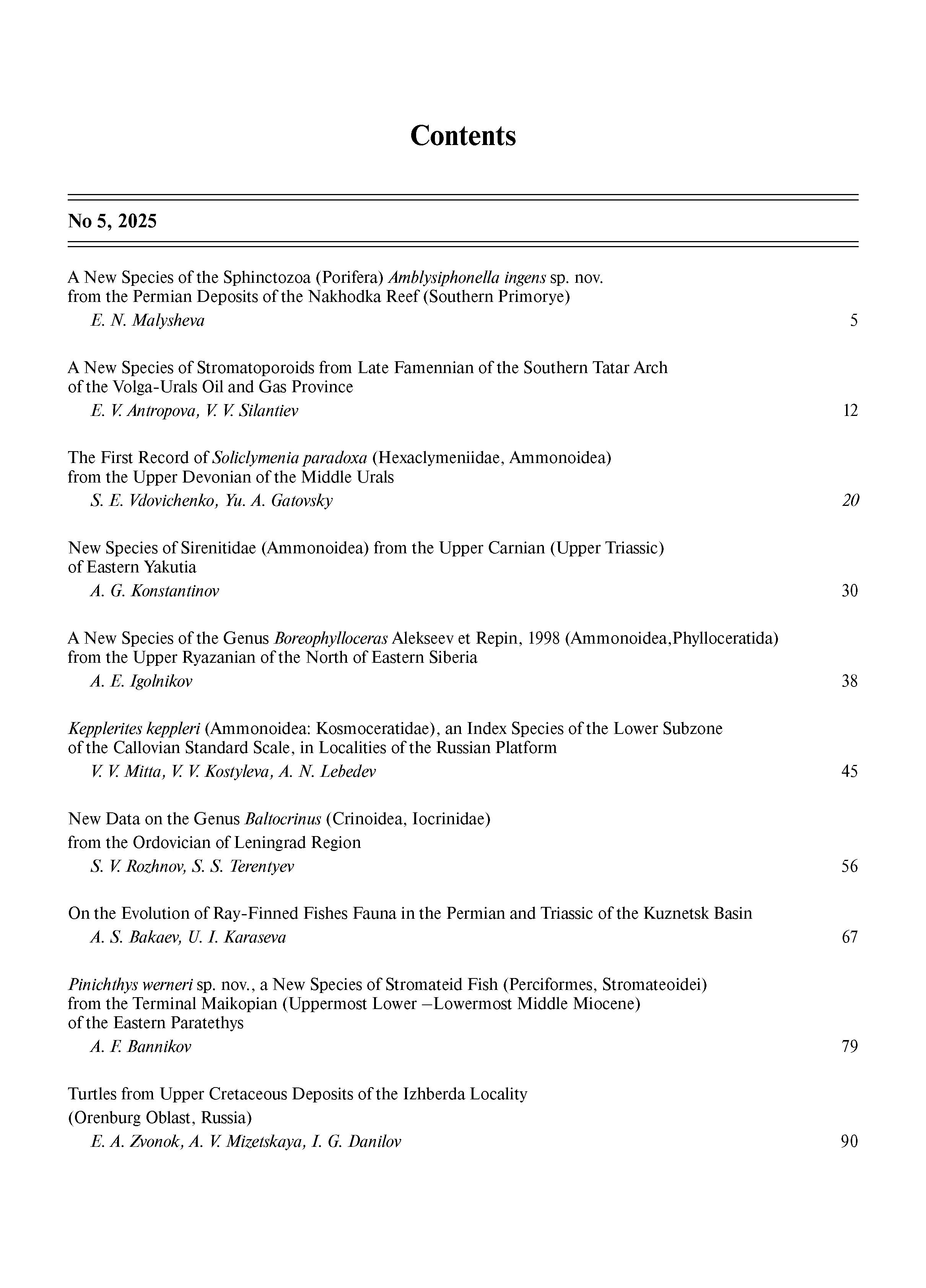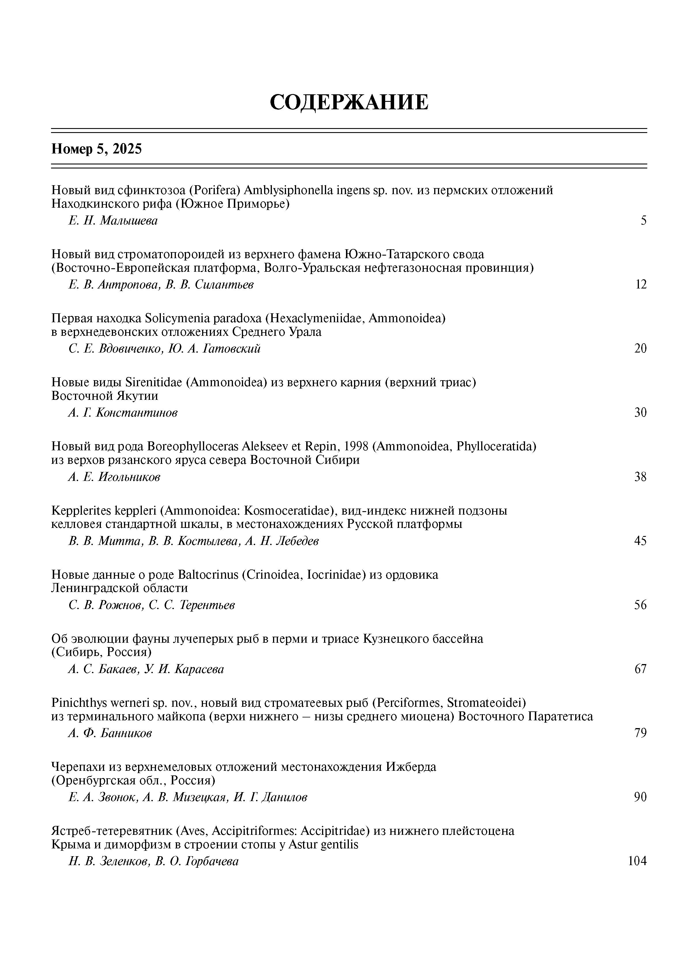 Палеонтологический журнал 2025 N 5 | Палеонтологический журнал 2025 N 5 | 2025 | 5 |