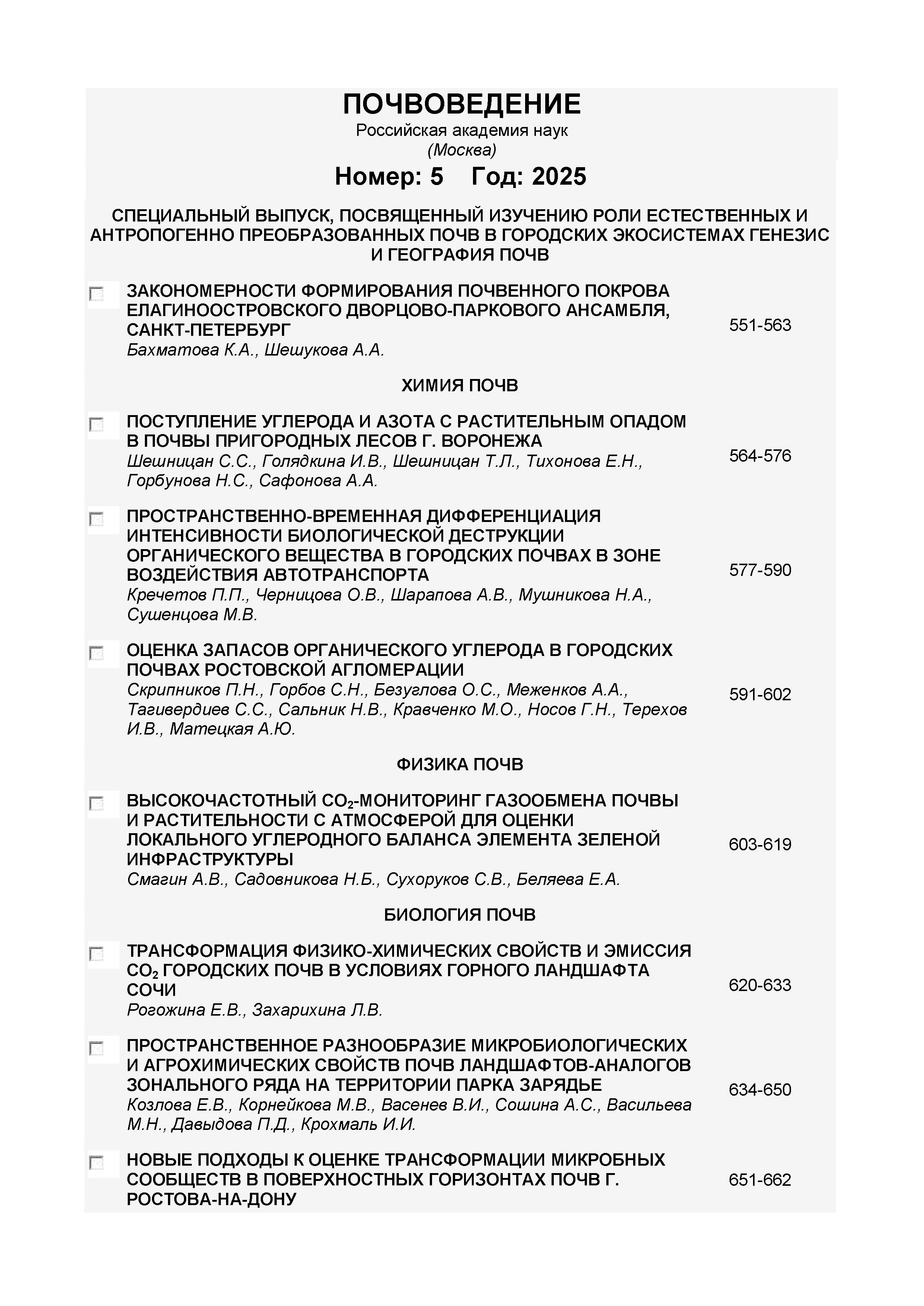 Почвоведение 2025 № 5 | Почвоведение 2025 № 5 | 2025 | 5 |