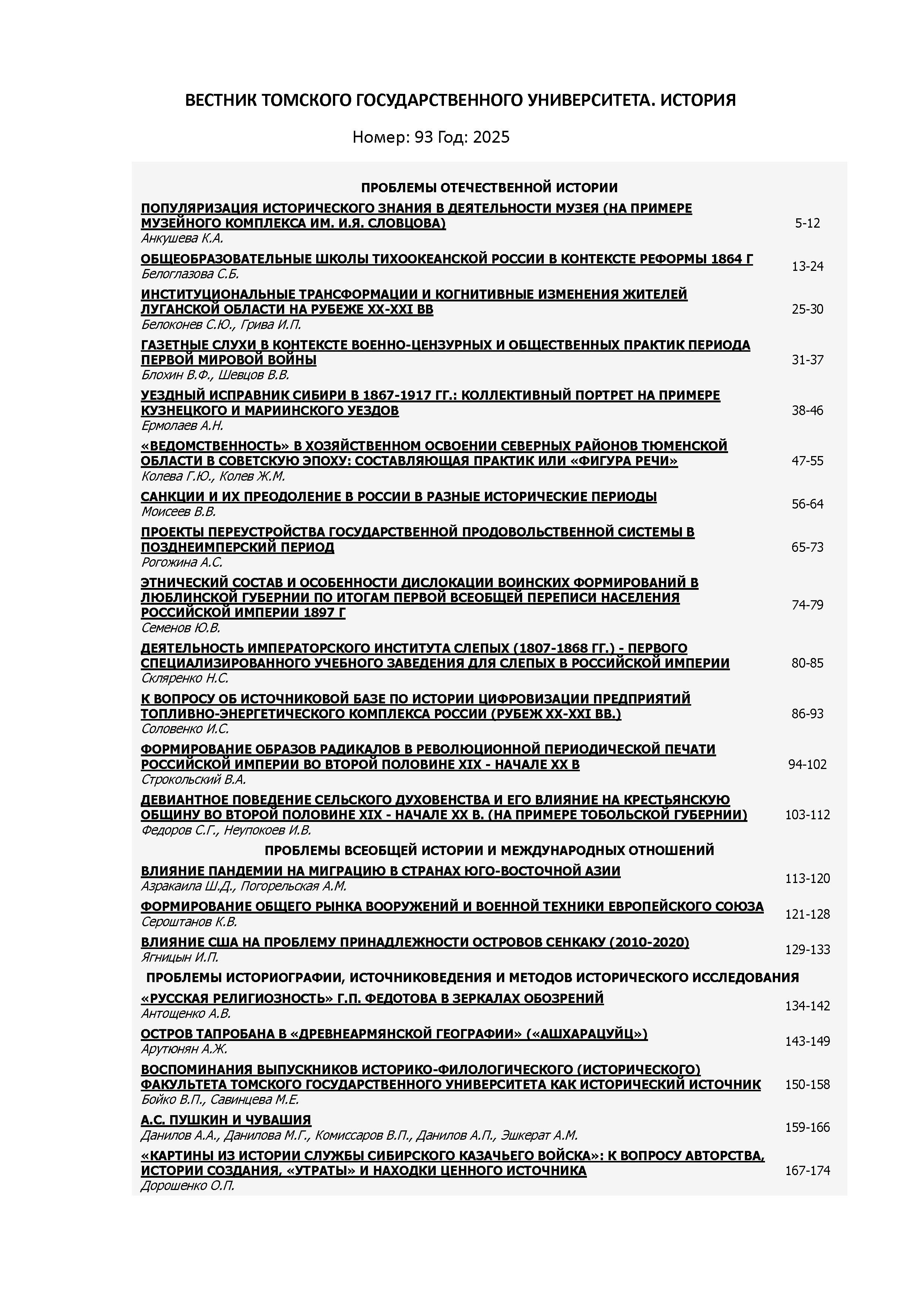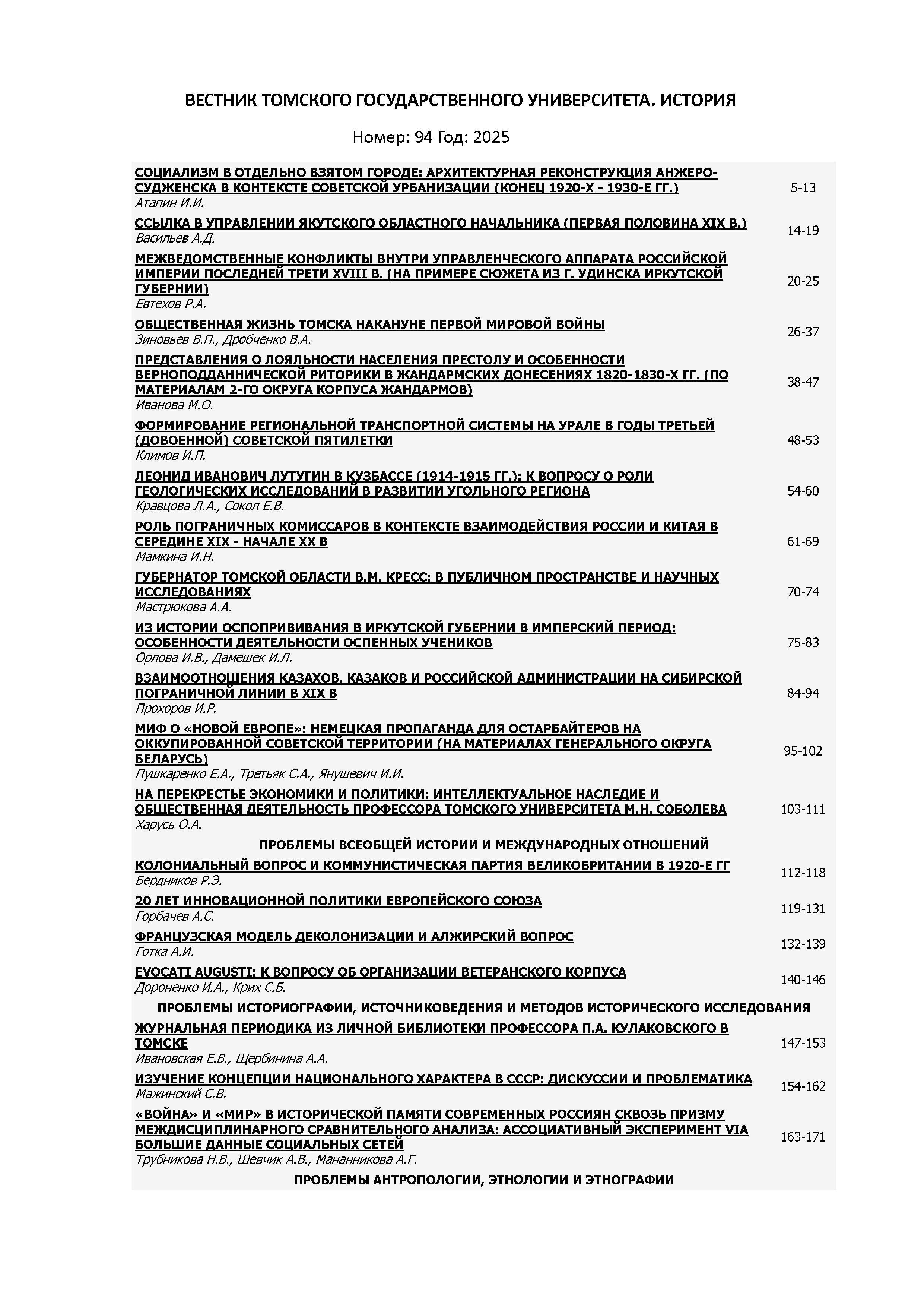 Вестник Томского государственного университета. История 2025 N 94 |